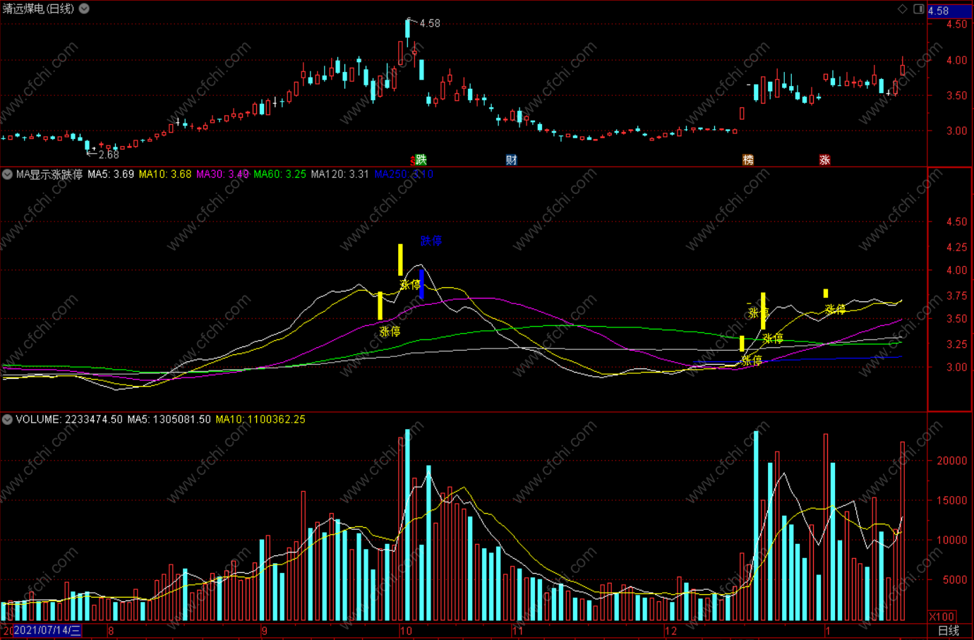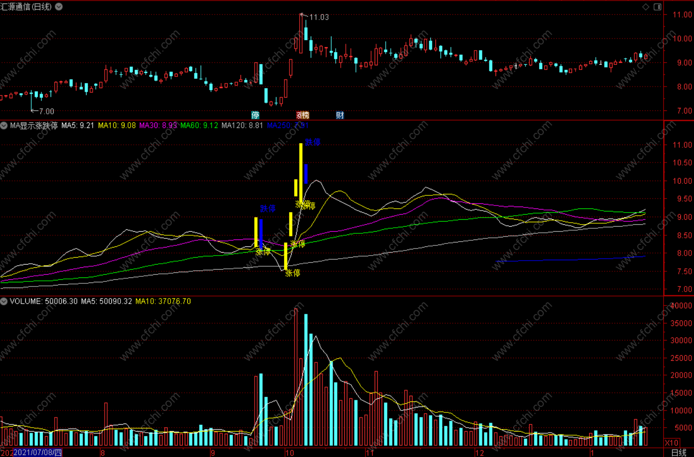 MA显示涨跌停 通达信副图指标公式 源码 无未来