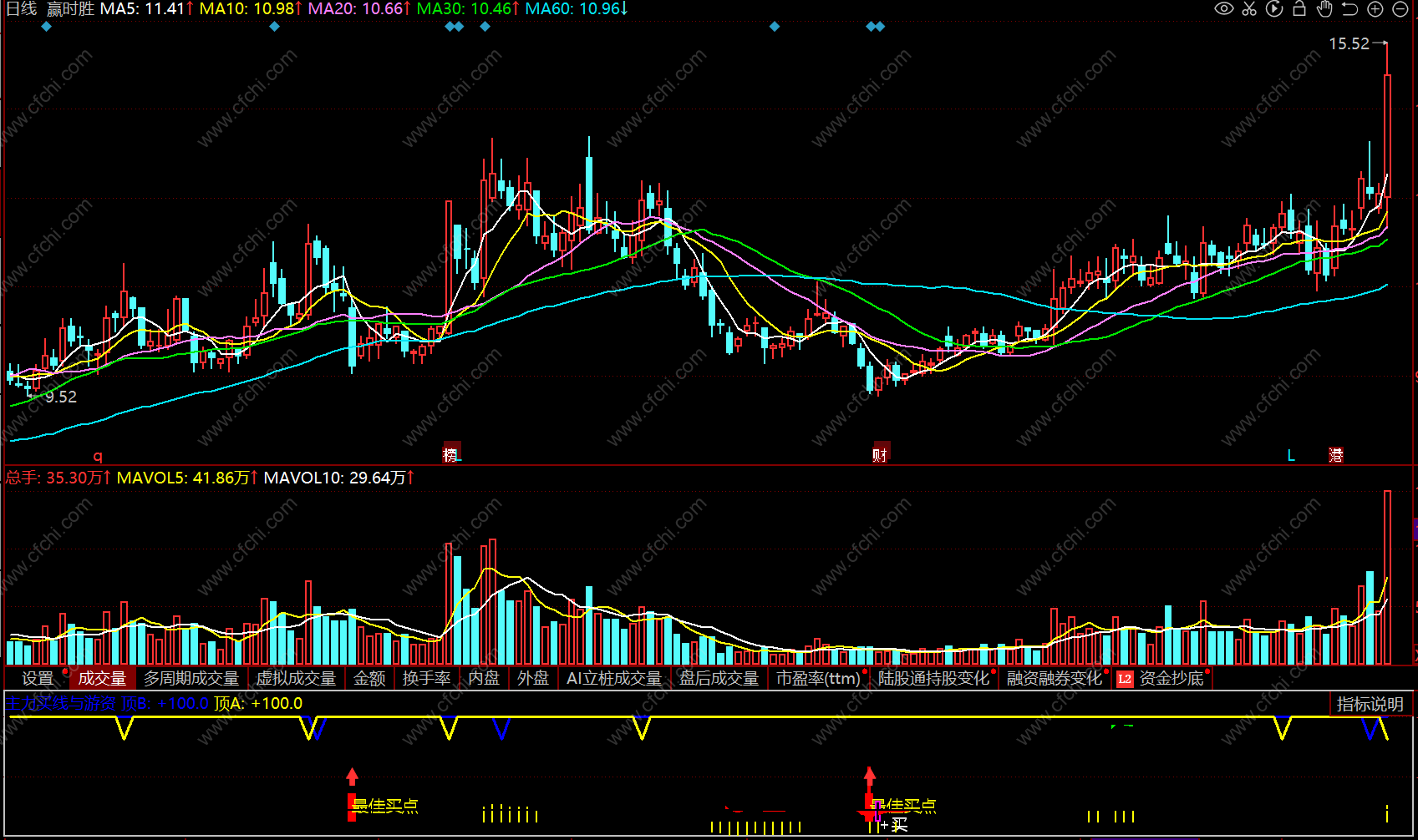精华版:分时主力吸筹:增加了买入点提示,效果不错。手机电脑都可用。