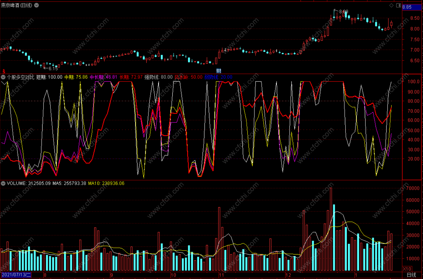 (个股多空对比 通达信副图指标公式 源码 无未来)