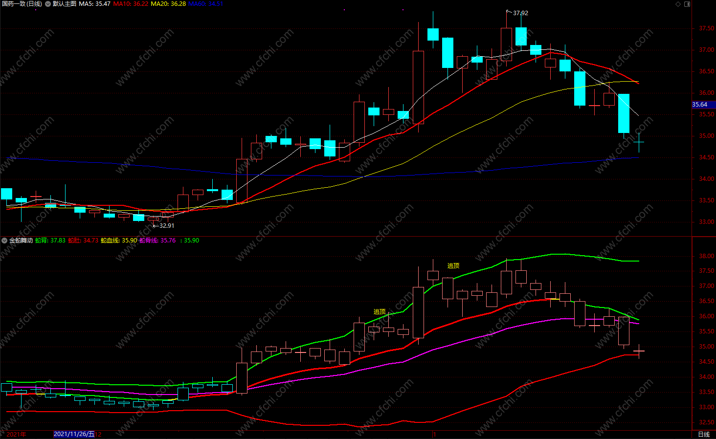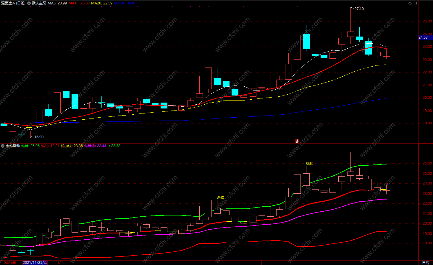 出现买卖点时会标出买入、逃顶信号。看图操作即可。