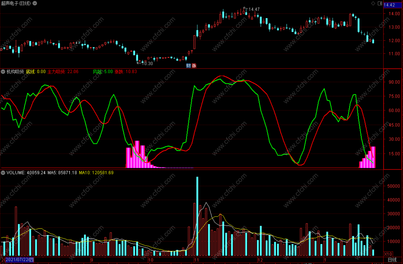(【机构吸货指标】通达信副图指标公式 无未来 源码)