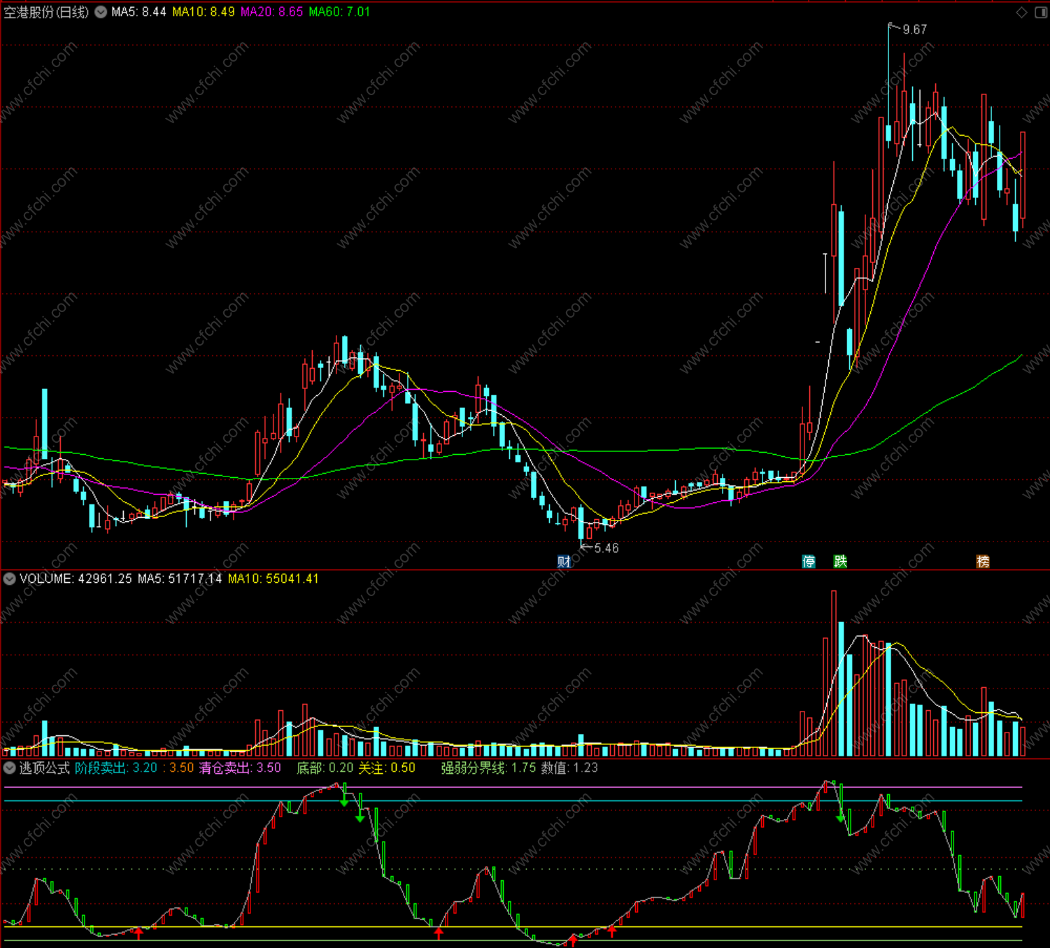 财富池指标公式网(www.cfchi.com)提醒您:指标公式是通过数学逻辑角度编写而来,仅是股票分析环节中的一个辅助工具,对股票选股效率和分析便捷上起到一定的作用,股市是具有不确定性和不可预测性的,请正常对待和使用指标公式!