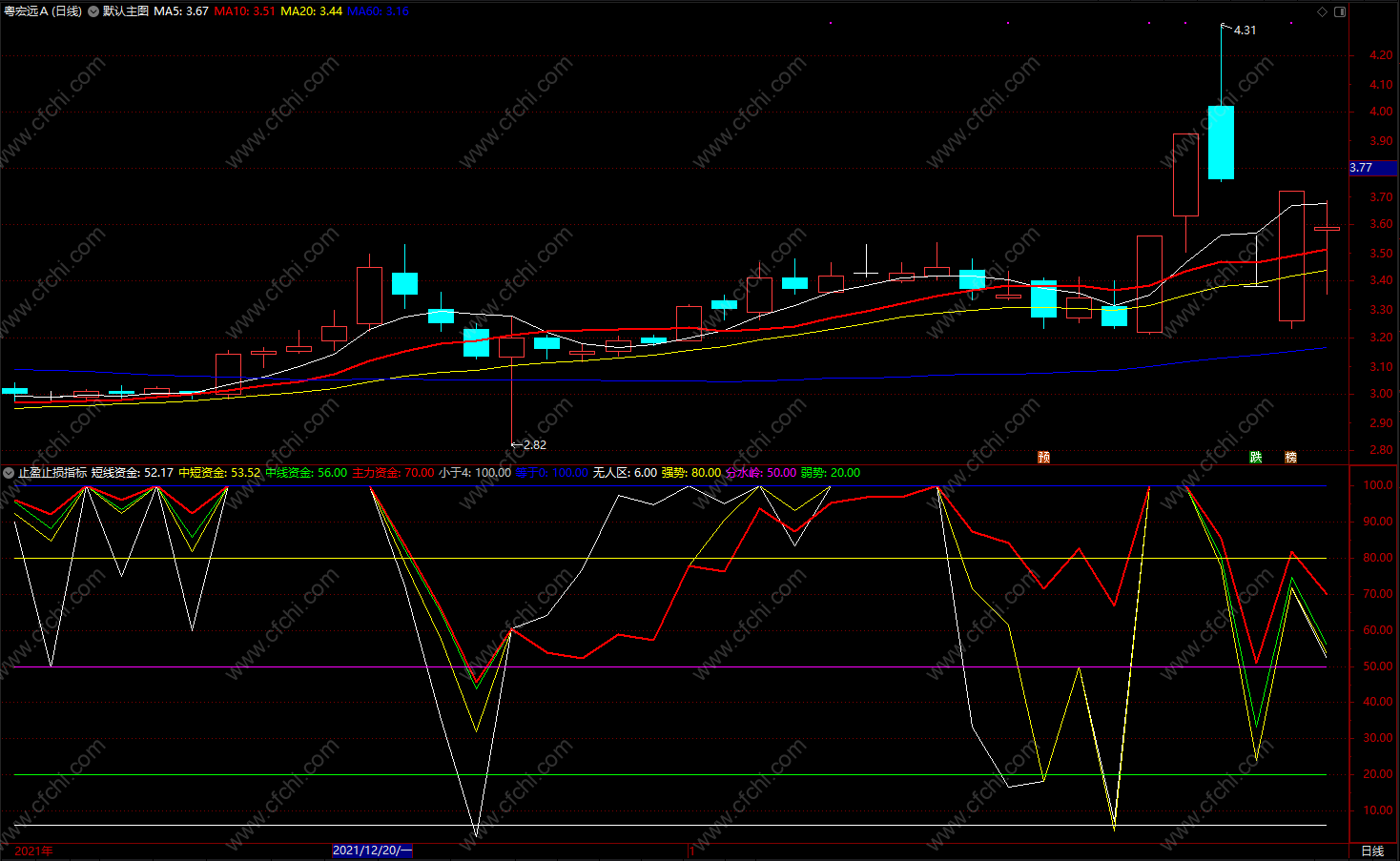 财富池指标公式网(www.cfchi.com)提醒您:指标公式是通过数学逻辑角度编写而来,仅是股票分析环节中的一个辅助工具,对股票选股效率和分析便捷上起到一定的作用,股市是具有不确定性和不可预测性的,请正常对待和使用指标公式!