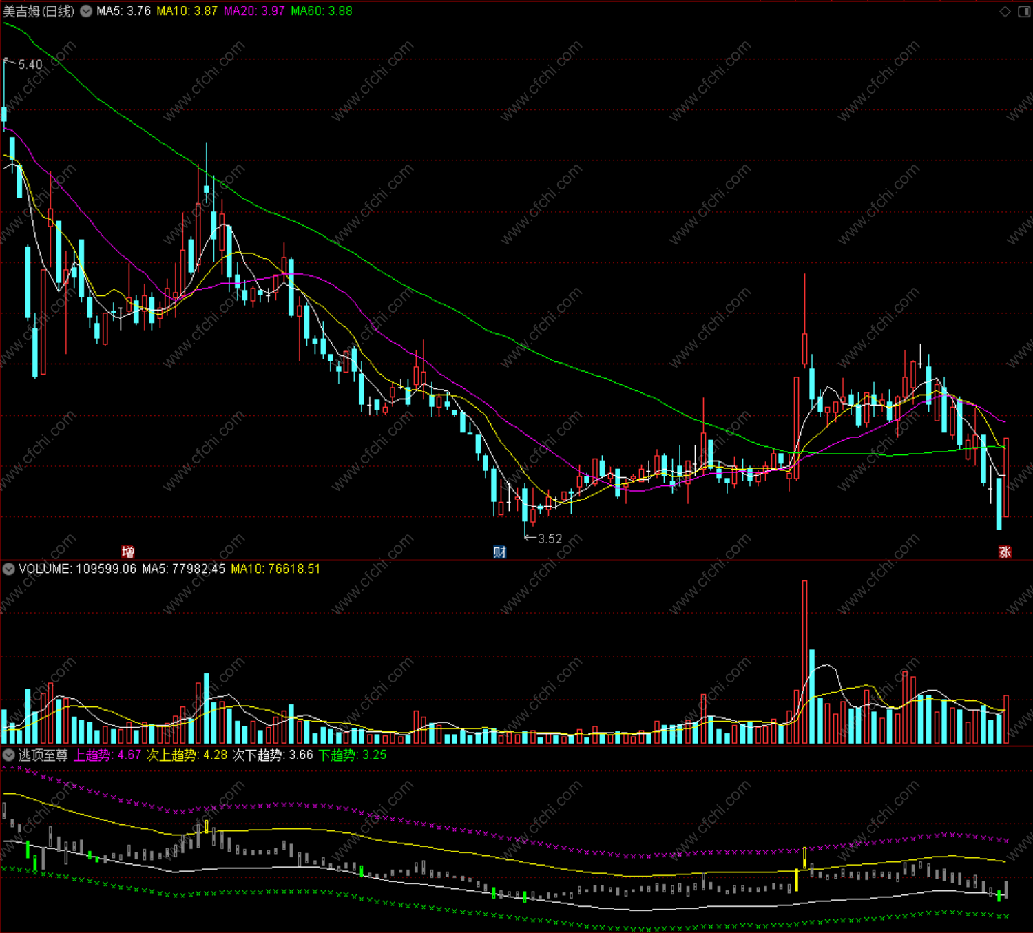 次下趋势:MA(HIGH,20)*0.9,COLORWHITE;
