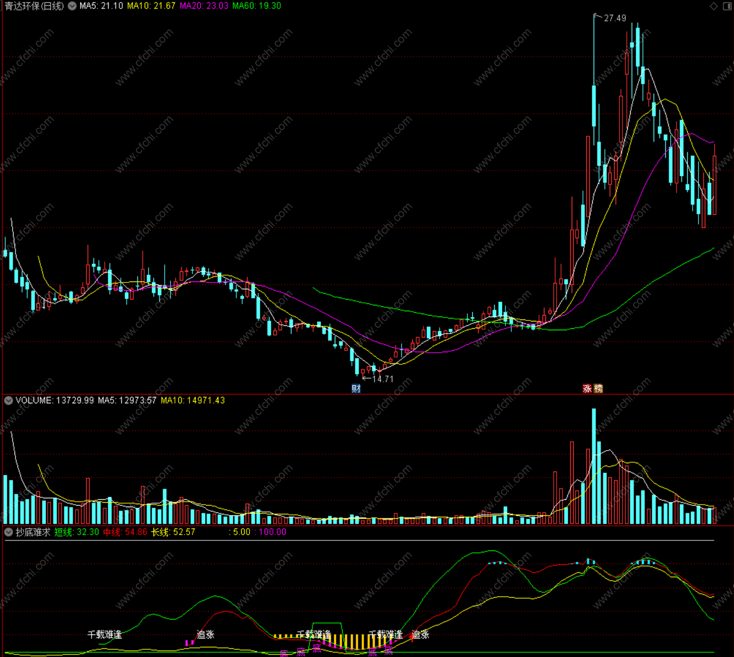看底:STICKLINE(中线<15,中线,15,1,0),COLORF00FF0;