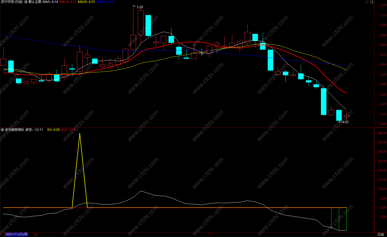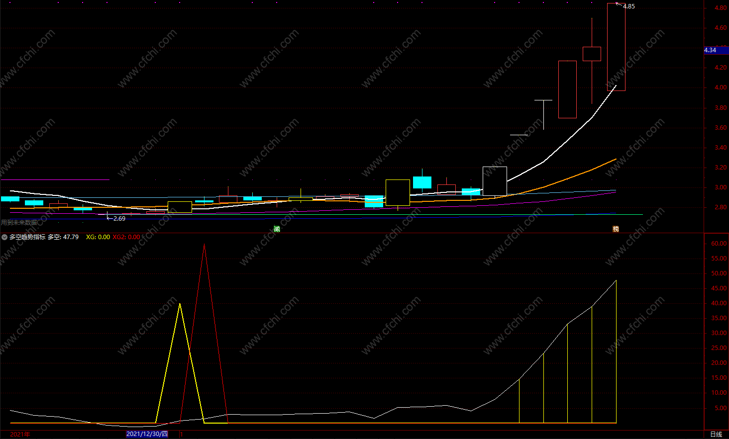 (双信号主升 通达信多空趋势指标 副图 公式 源码 贴图)
