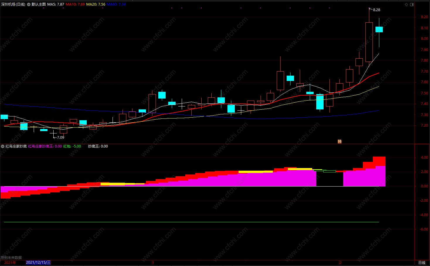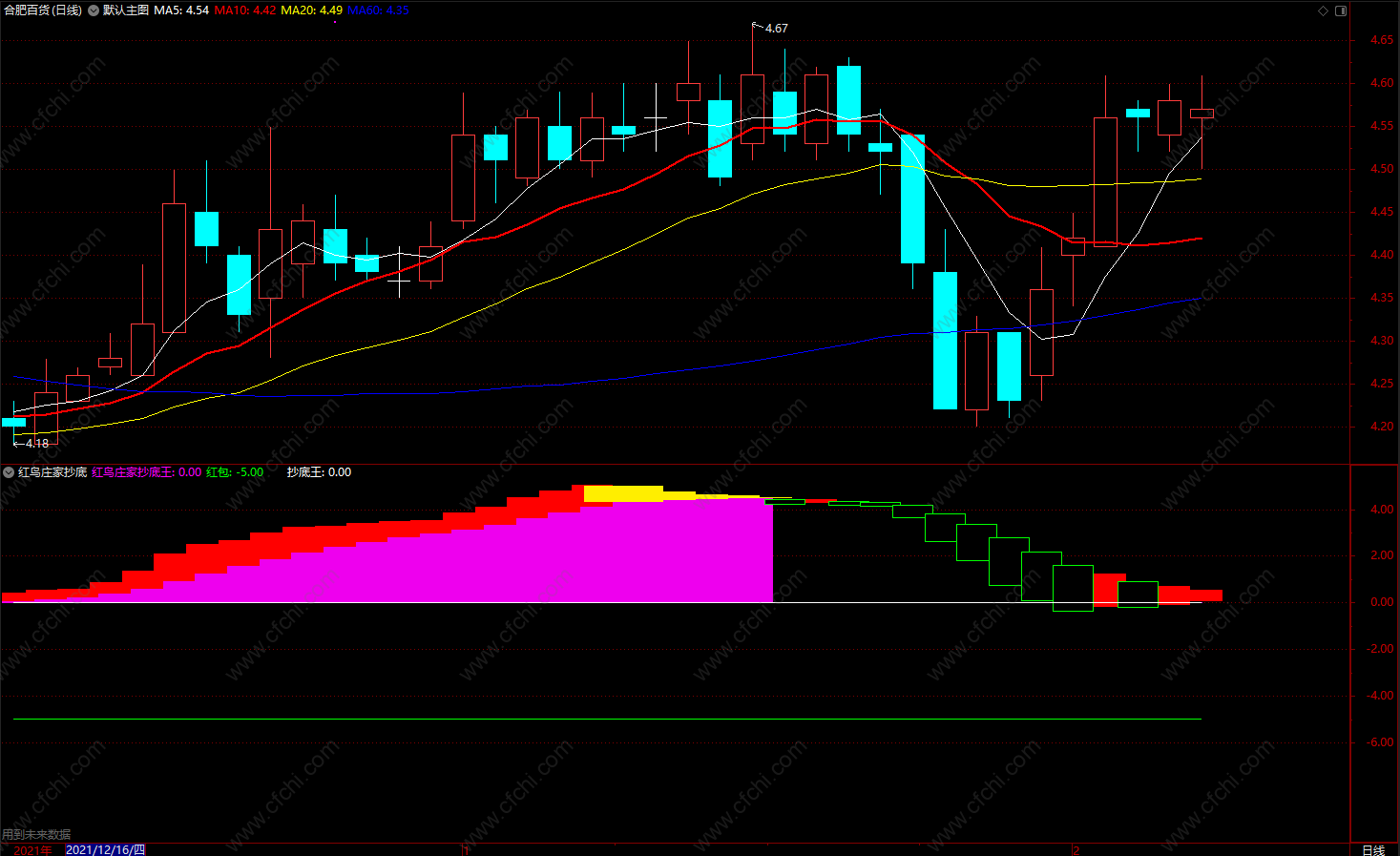 选股1:=-26;抄底:=-40;红鸟庄家抄底王:0,COLORFF00FF,POINTDOT;