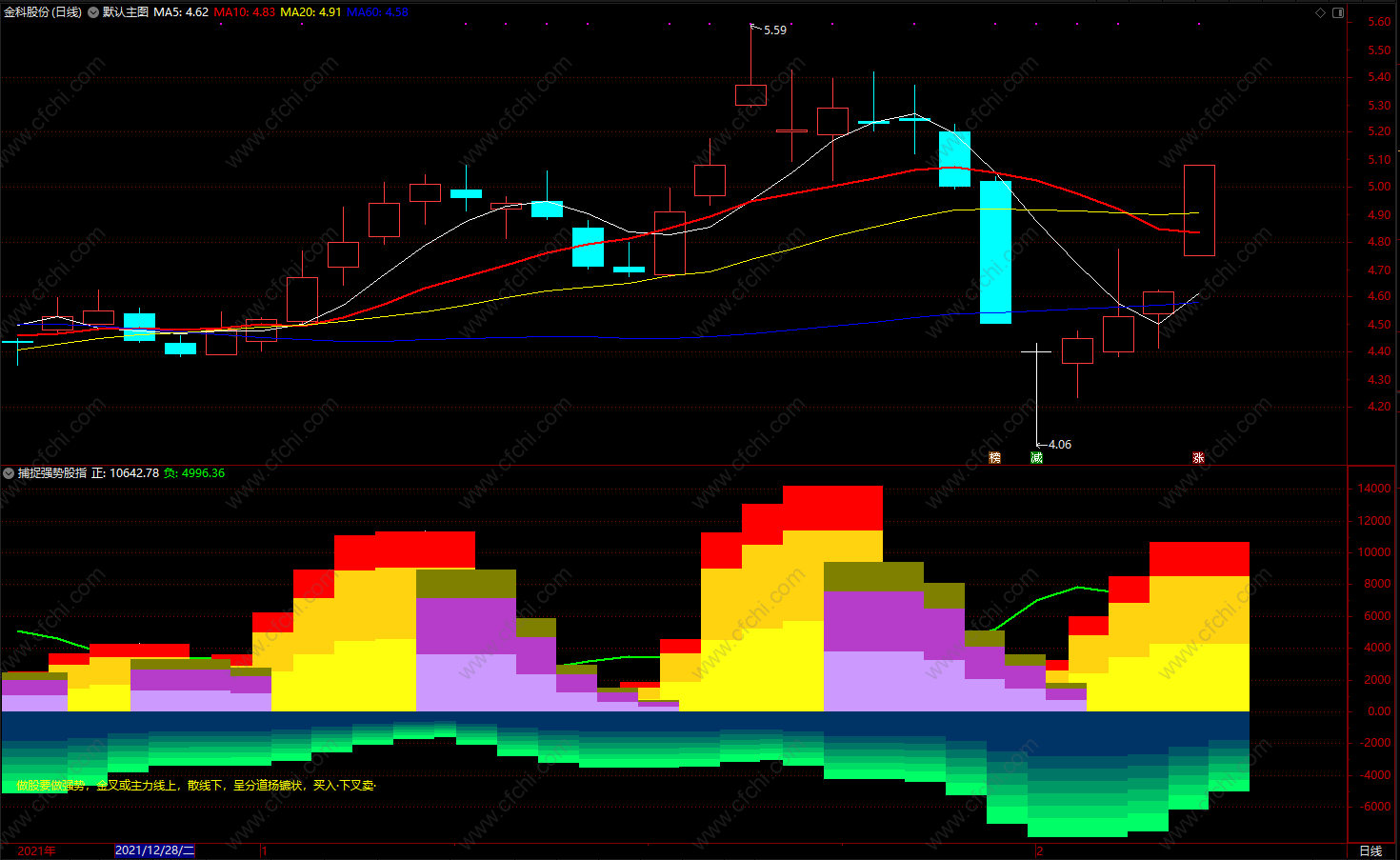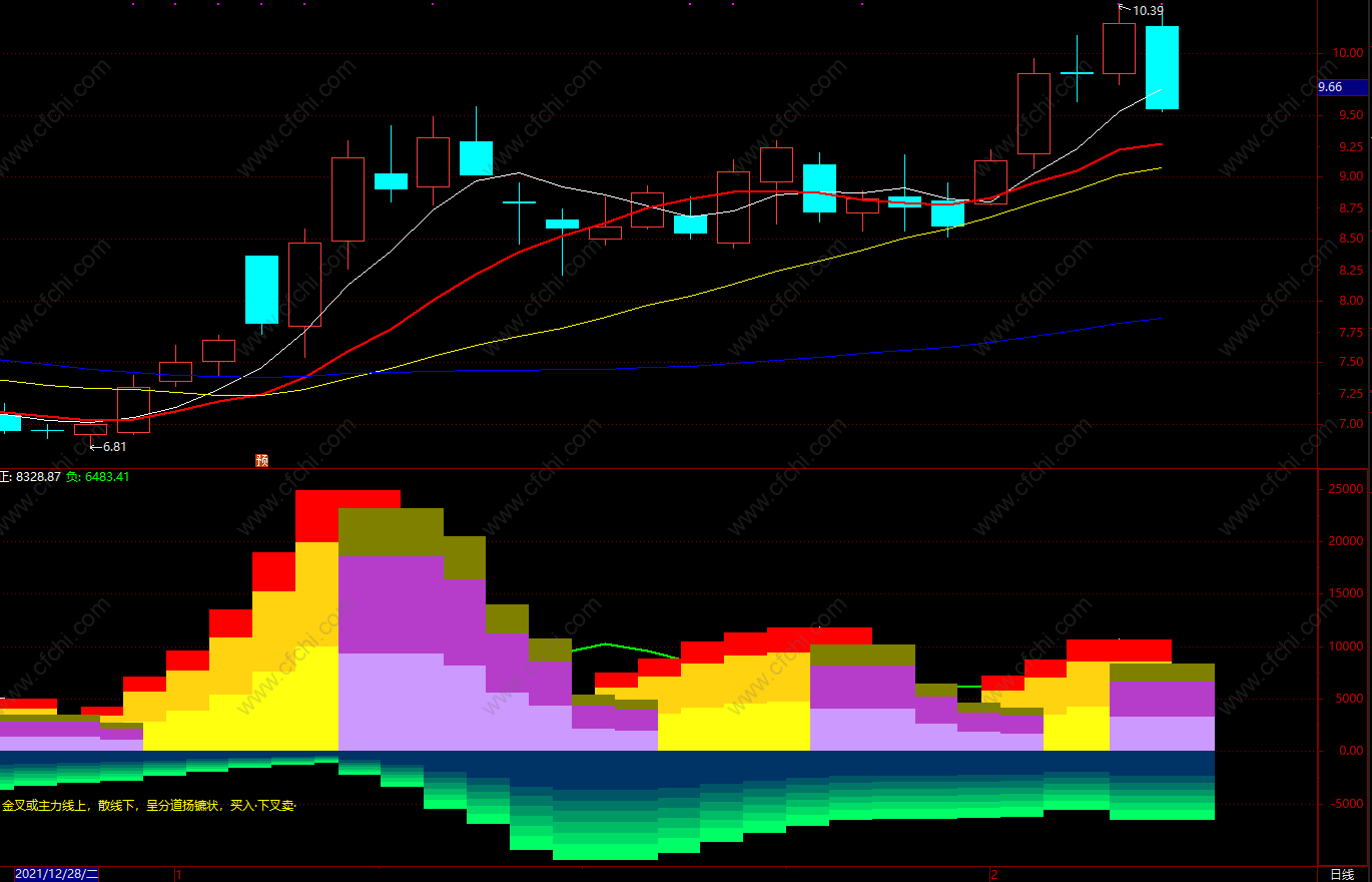 献给股民朋友们的大礼,这是一个令人心旷神怡的指标,不仅图形很直观,而且色彩很好看,用起来也很简单。看一下下面的说明就可以了。