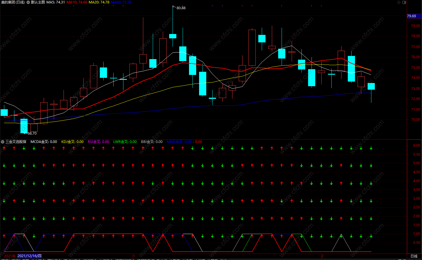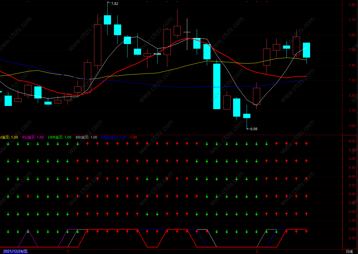 MCDA金叉 AND KDJ金叉 AND RSI金叉 AND LWR金叉 AND BBI金叉 AND MMS金叉,COLORRED,LINETHICK2;