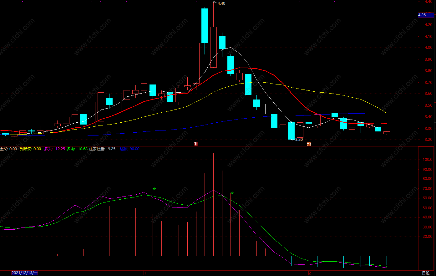 SJCJD:= IF((PPDAY<=3 AND VVDAY<=3 AND MACDDAY<=3)AND (DIFF<0),1,0);