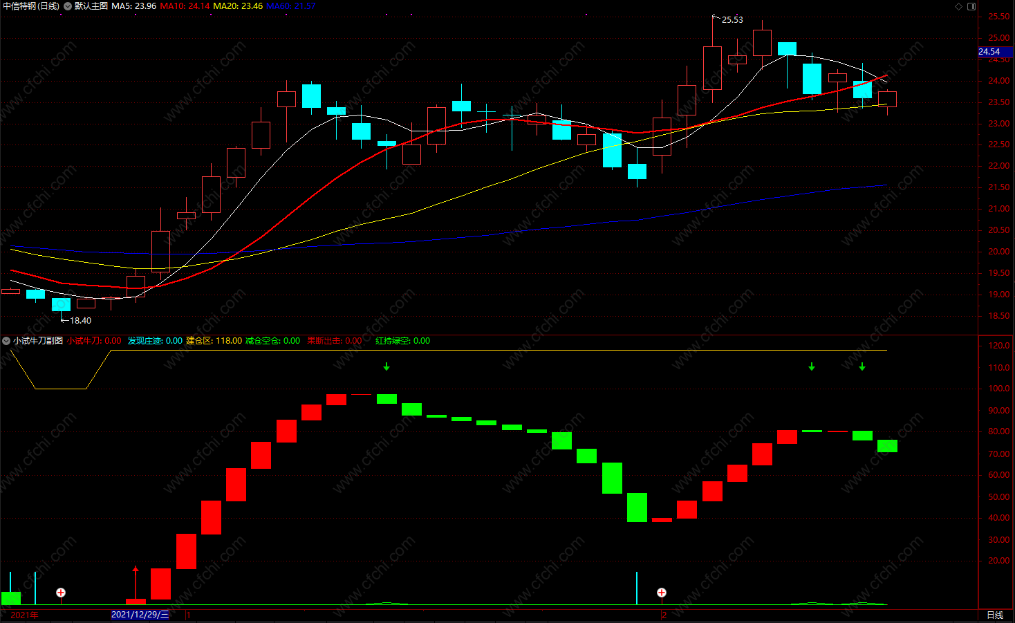 (小试牛刀指标 通达信波段红买绿卖趋势波段 源码 副图)