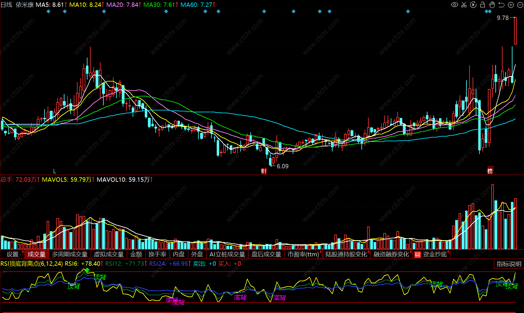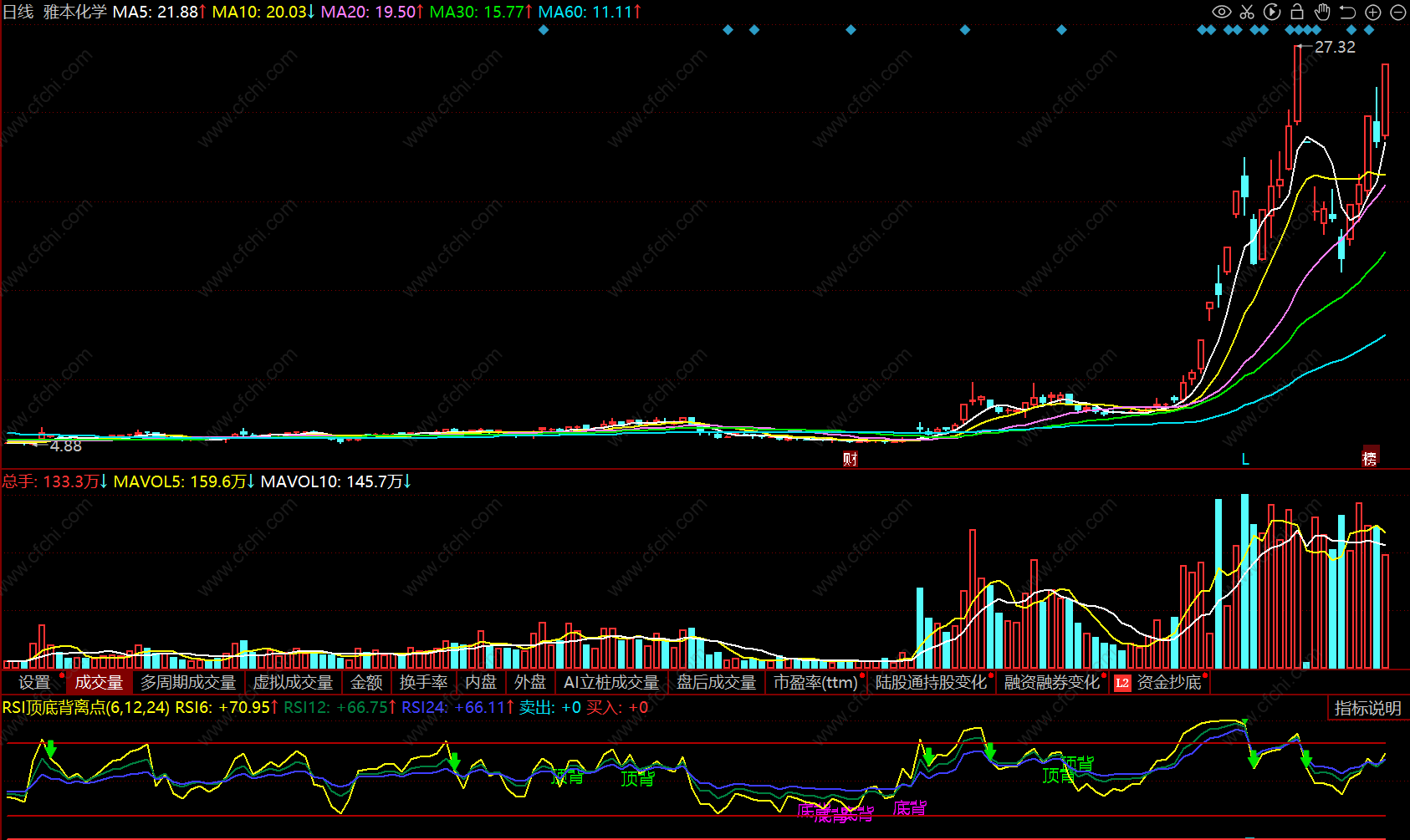 RSI顶底背离点 同花顺 副图 源码 指标公式