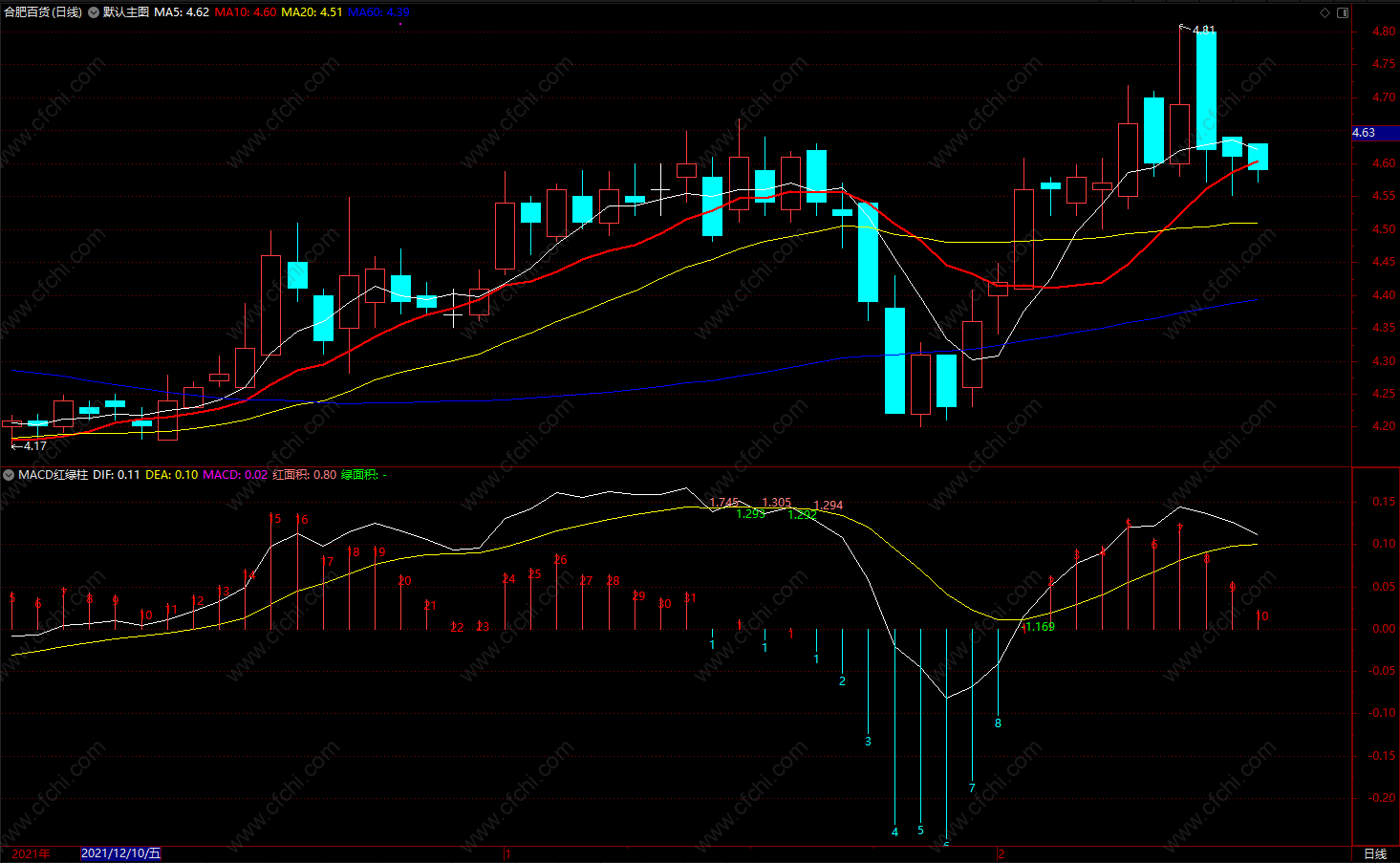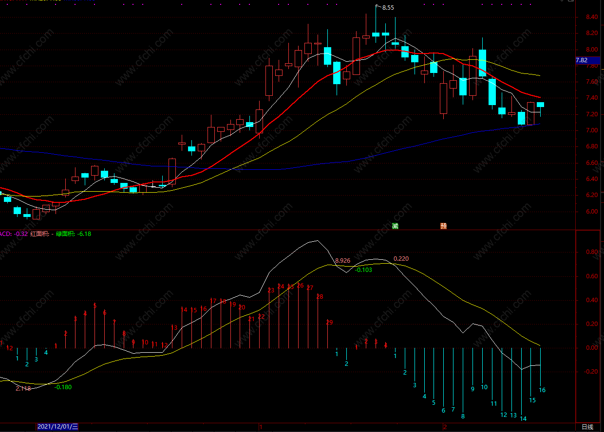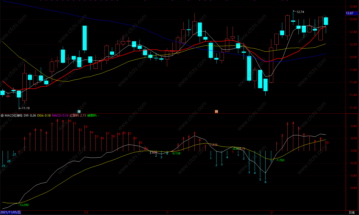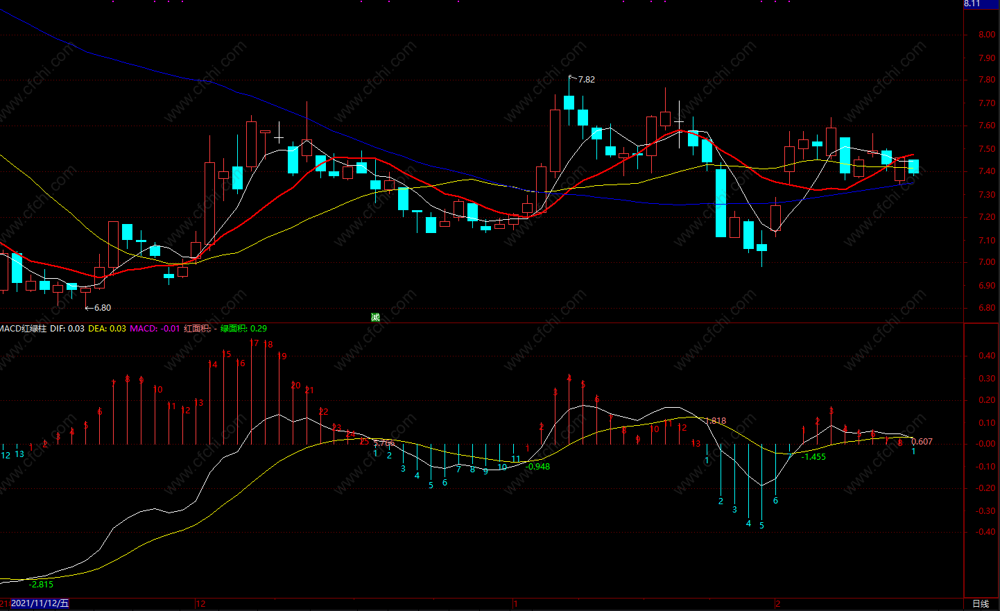(macd红绿柱数字 通达信macd顶底背离指标 副图 源码 贴图)
