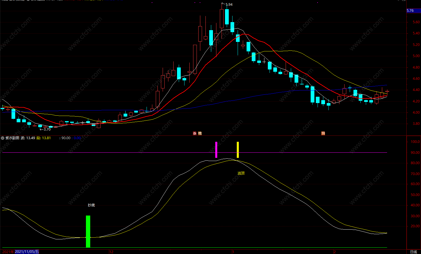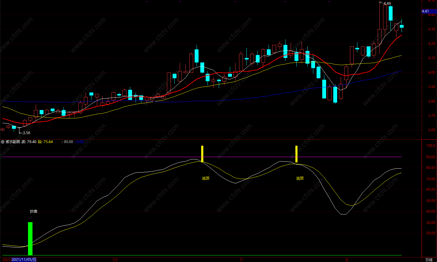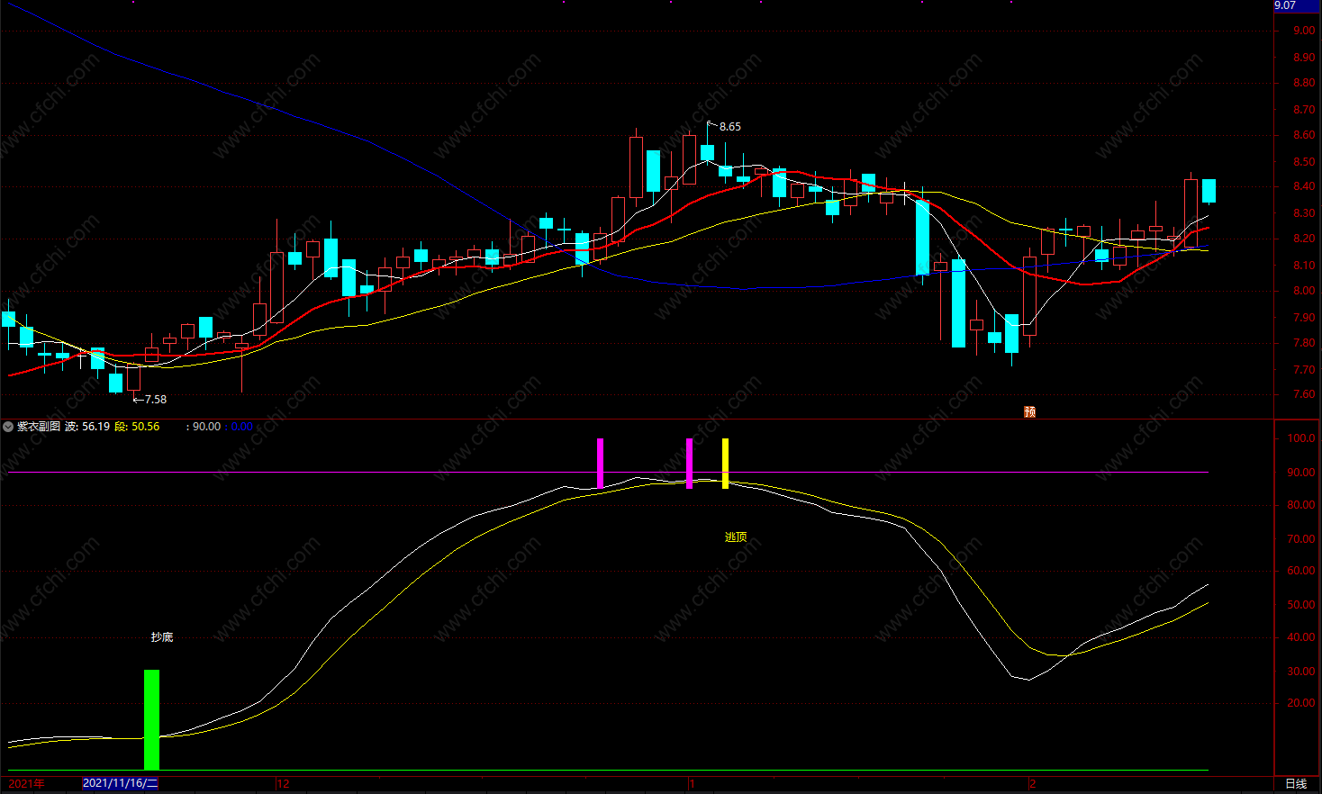 (紫衣抄底逃顶指标公式 通达信有买卖点提示指标公式 副图 源码)