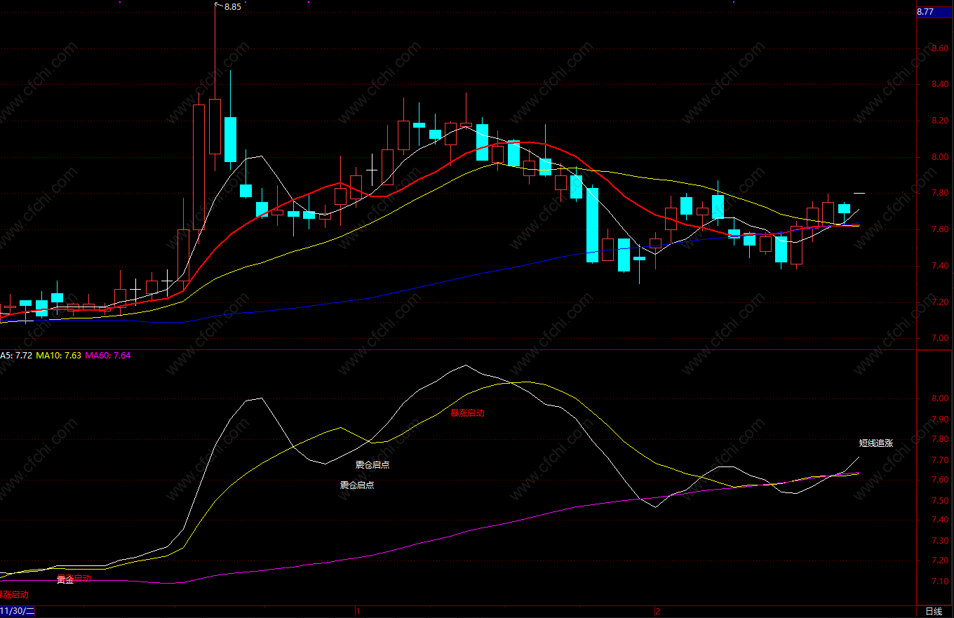 (暴涨启动指标 通达信短线决策指标底部买入提示 副图 源码)