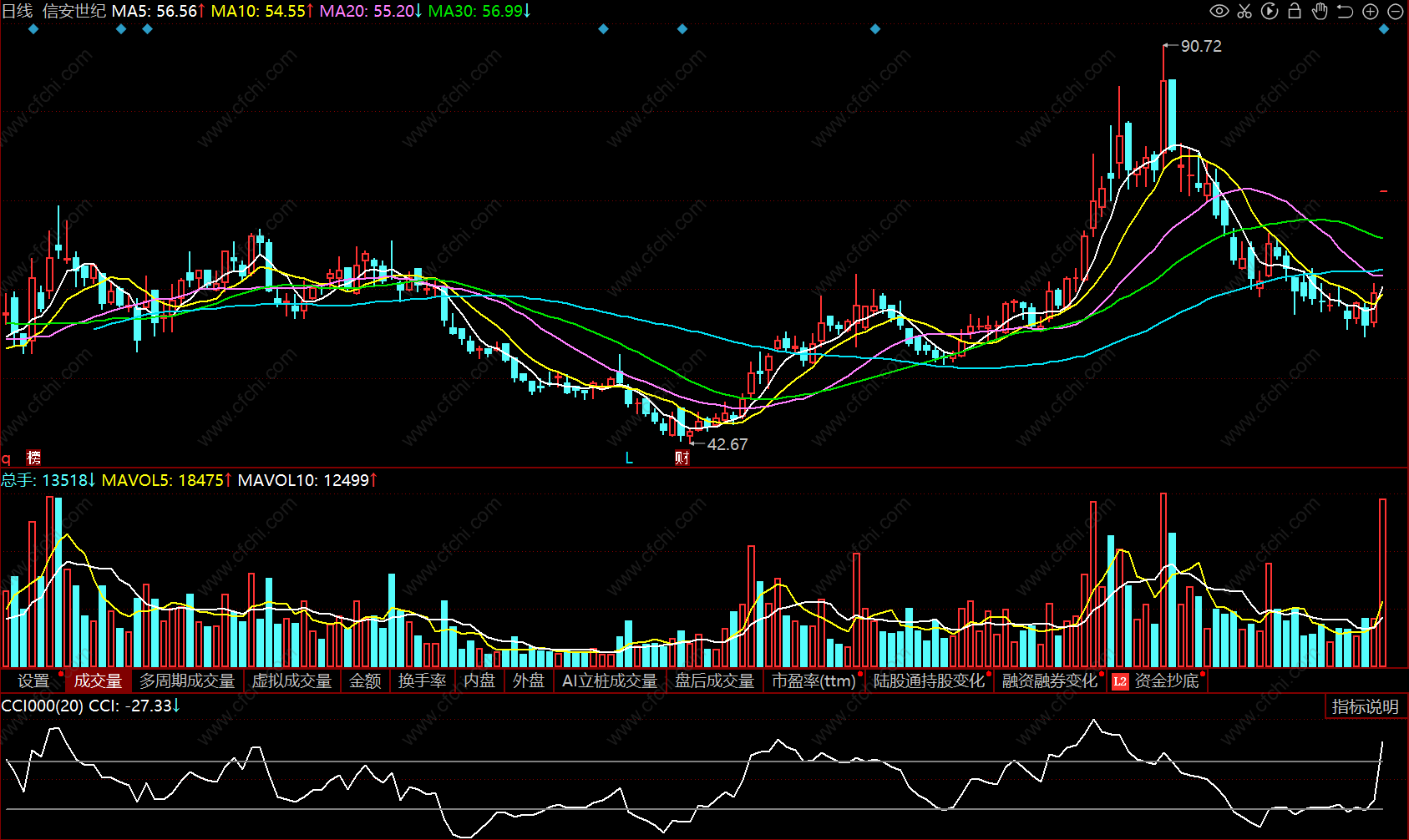 3.CCI>100 时,买进参考,直到CCI<100 时,卖出参考;