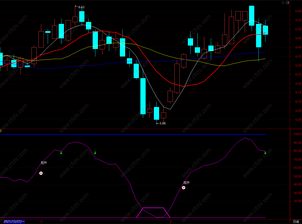 (顶底绝技指标副图 无未来通达信底升指标公式 拉升提示副图 源码)