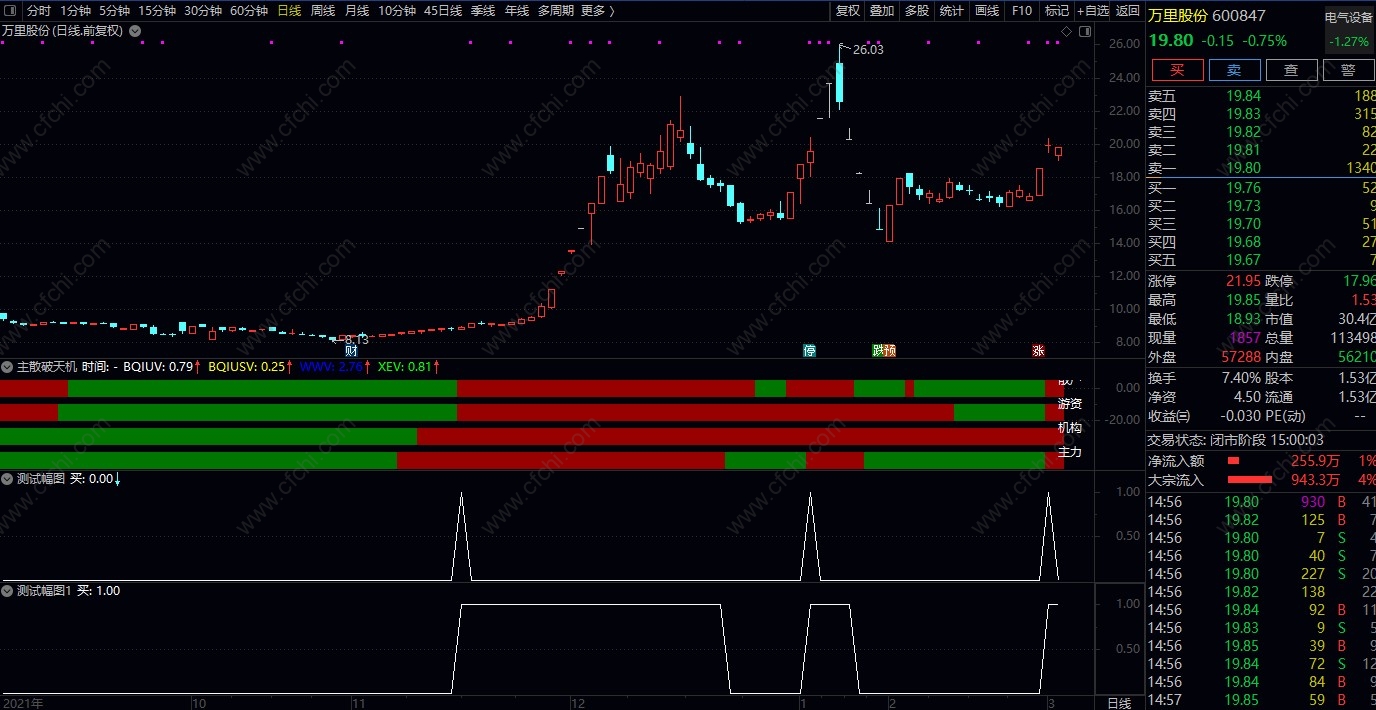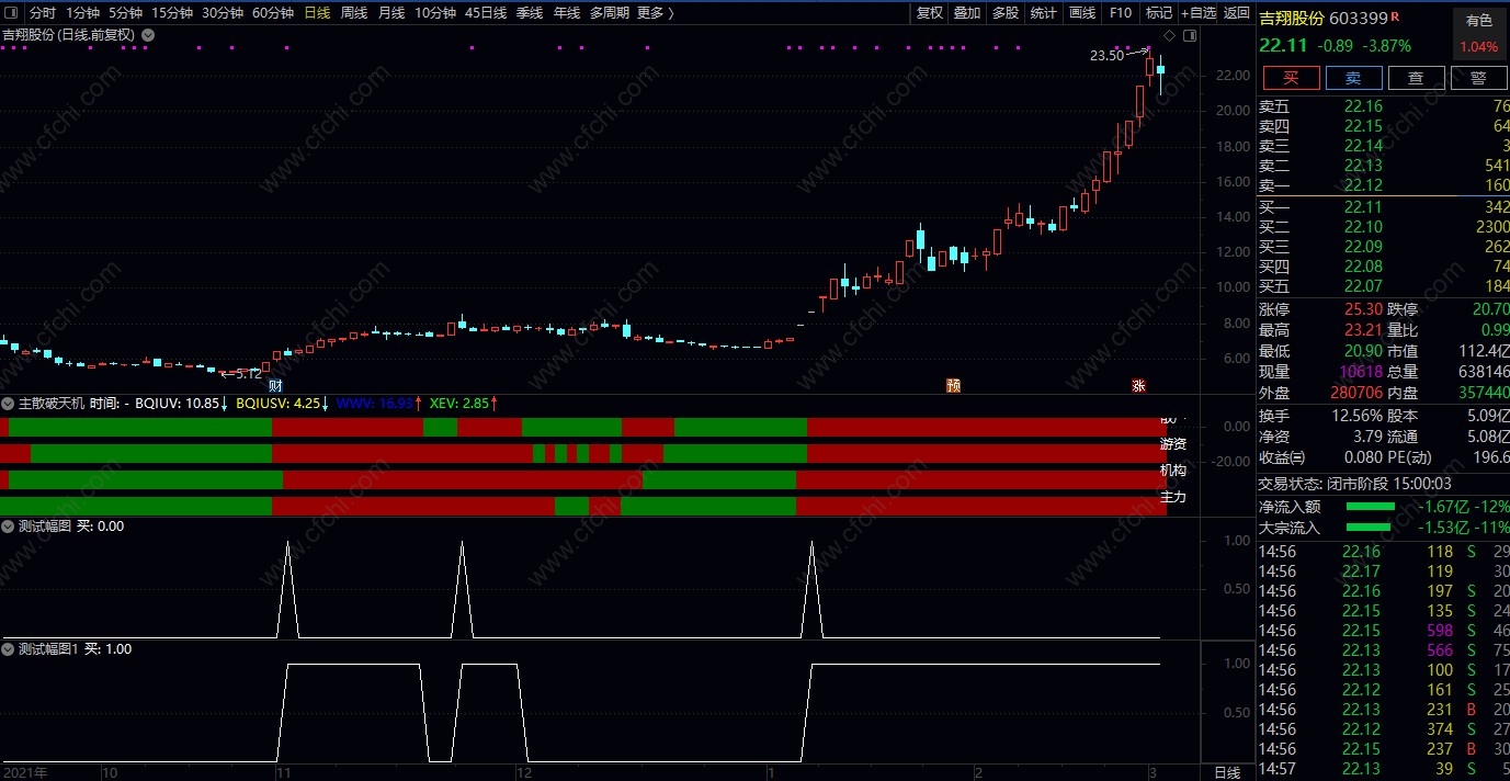 郑重声明:股市具有不确定性,个股走势是无法预测的。公式软件描述中的案例截图仅代表过去,仅供参考学习研究之用,不构成投资建议或未来保证,也并不能代表未来,依此操作,责任自负。股市有风险,入市需谨慎。