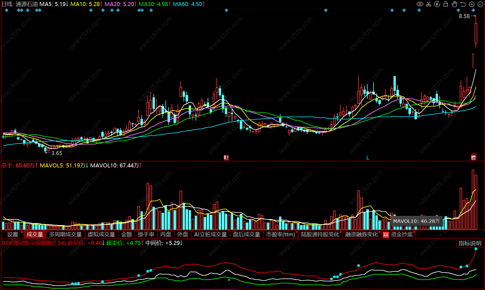DOP摆动指示探测器 同花顺 副图 源码 指标公式