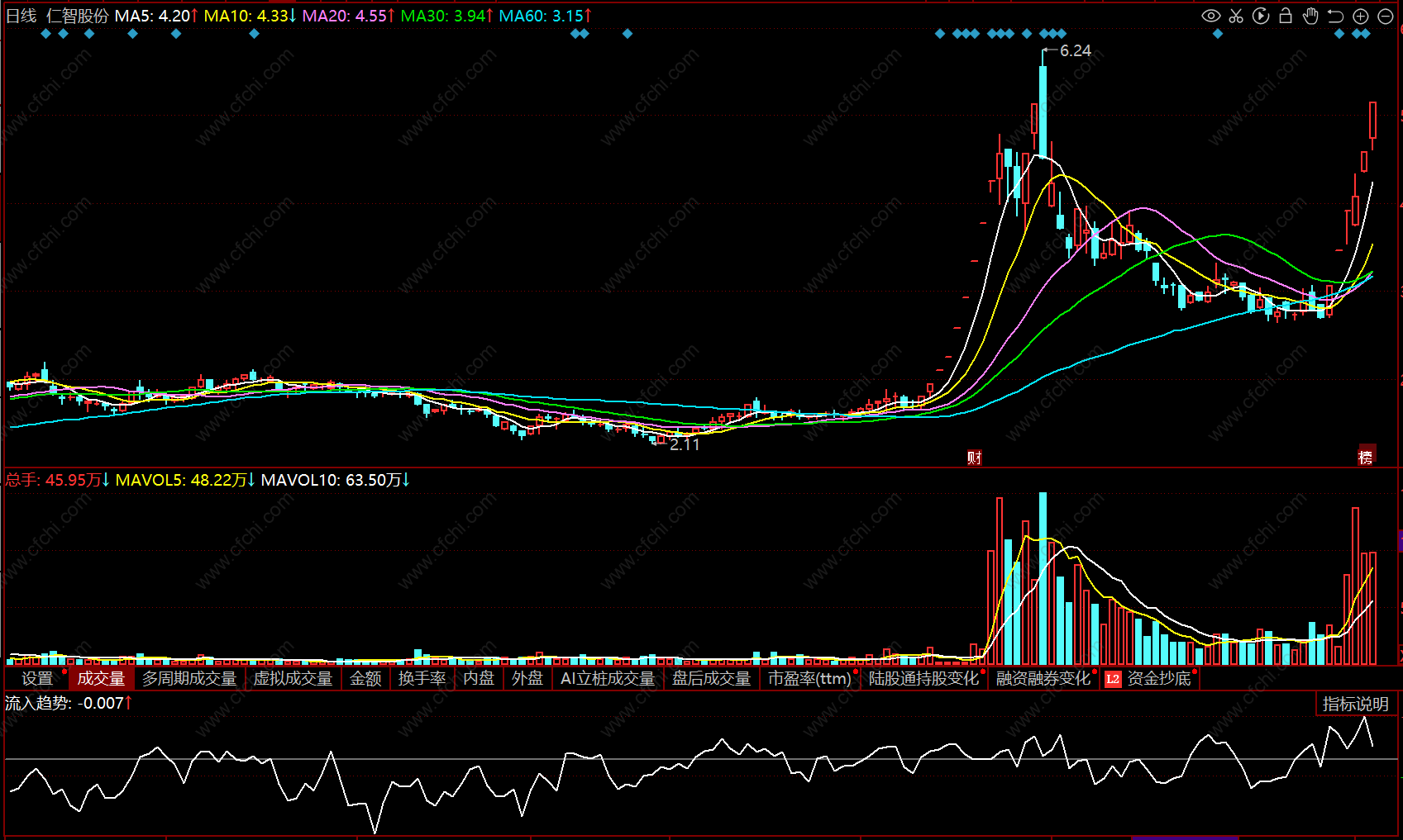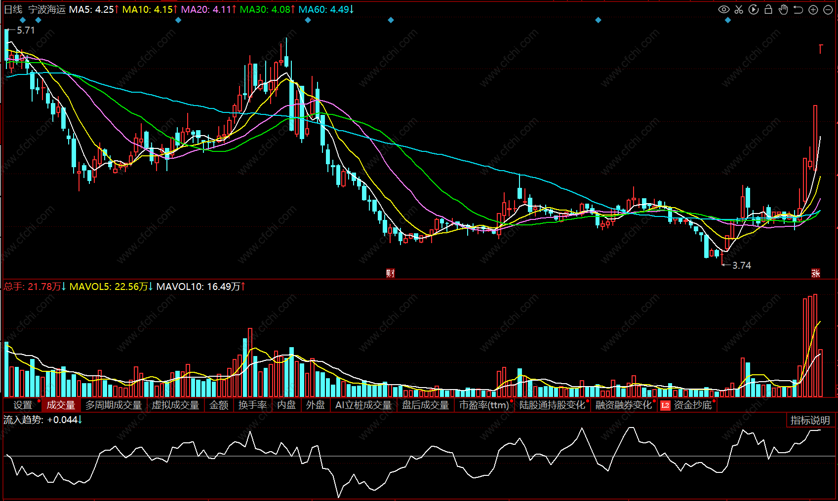 资金净流入趋势,可以作参考使用