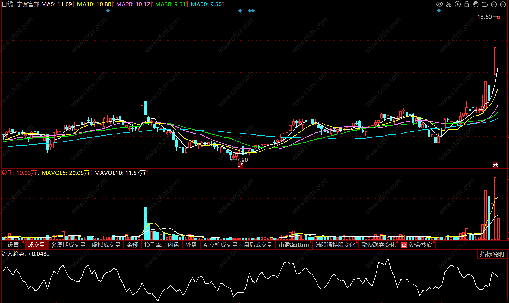 (净流入 同花顺 副图 源码 指标公式)