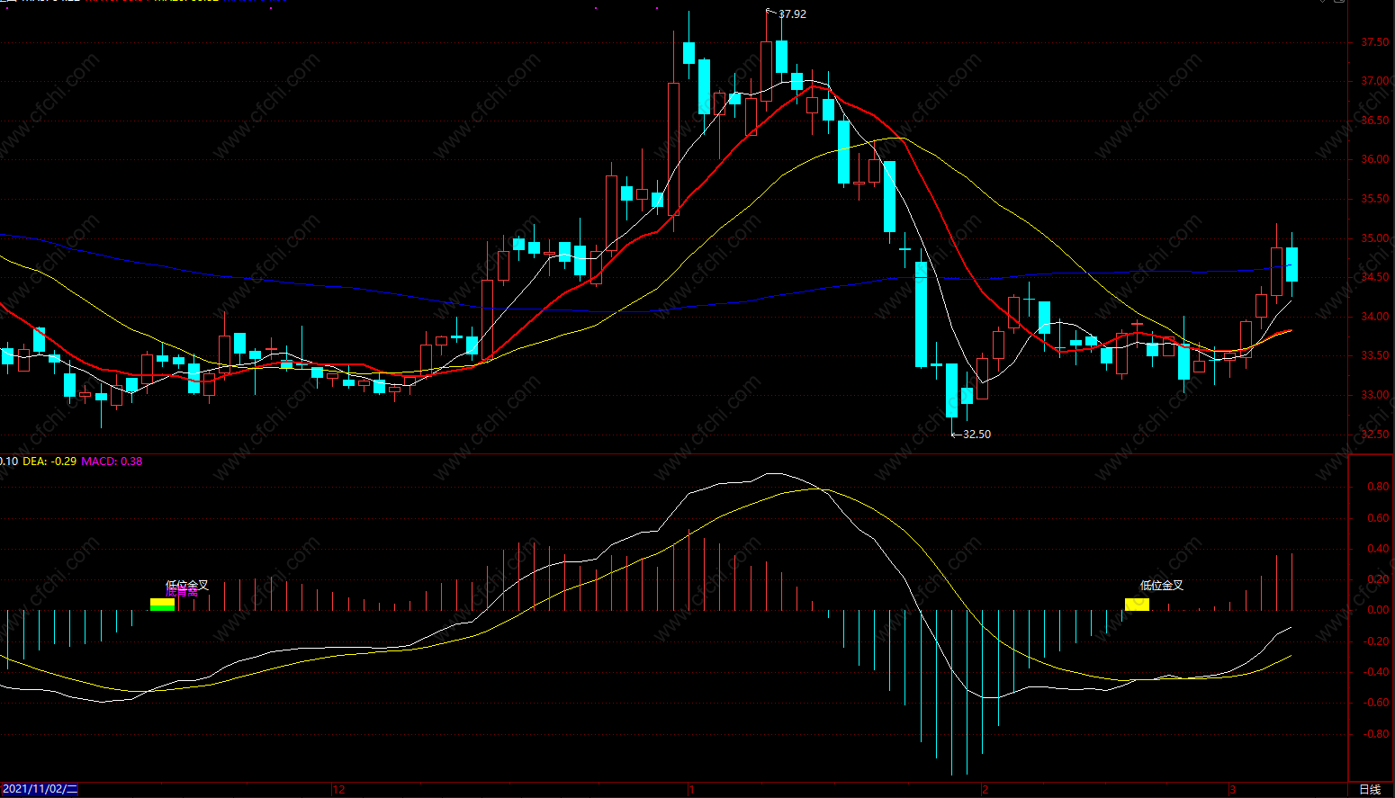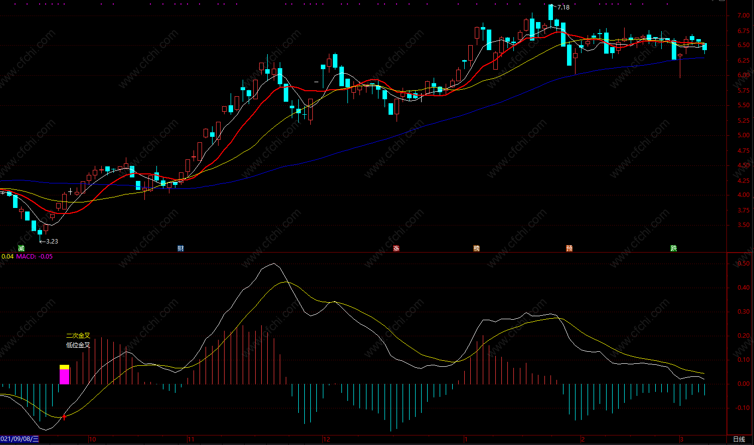 优化过的MACD二次金叉背离 通达信顶底背离提示 无未来函数 副图 源码