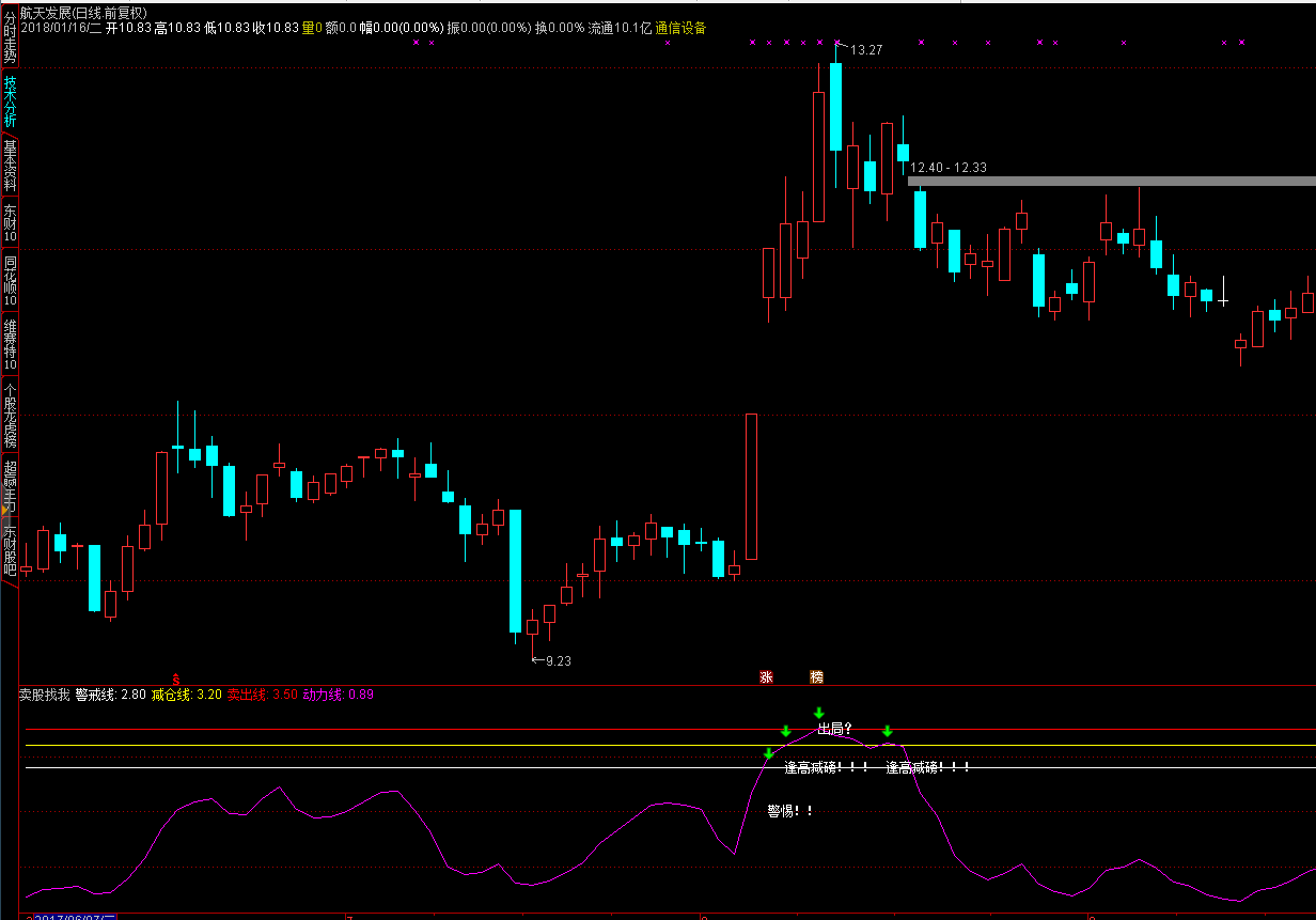 DRAWTEXT(CROSS(动力线,减仓线),2.8,'逢高减磅!!! '),