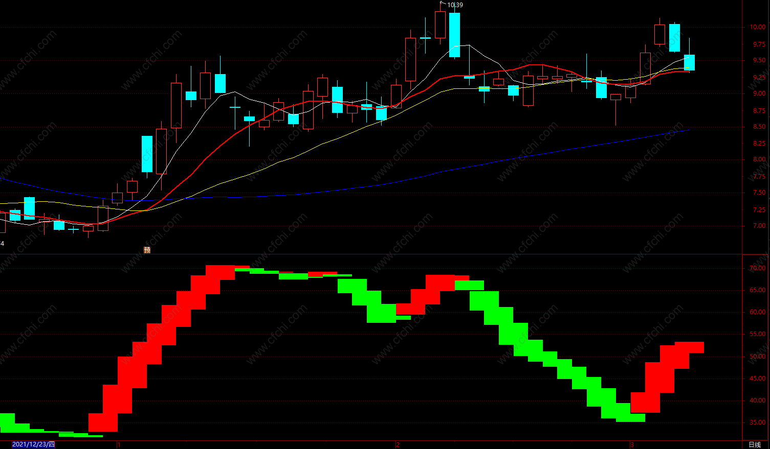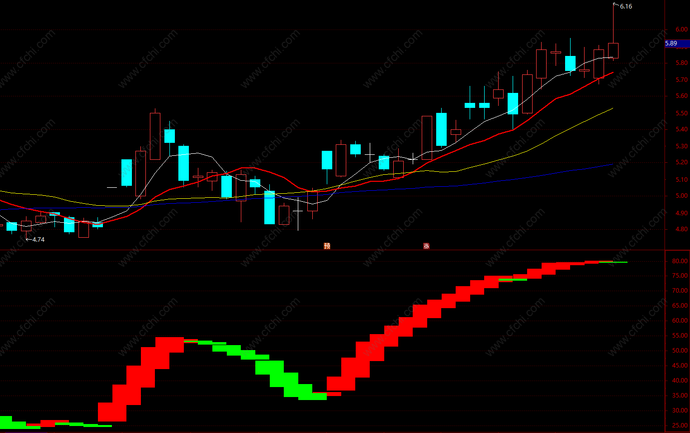 红线在上持股(红线)、回档不破洗盘(白线)、红线下穿减仓(蓝线)等,可依据目前所处的位置为投资交易提供参考。