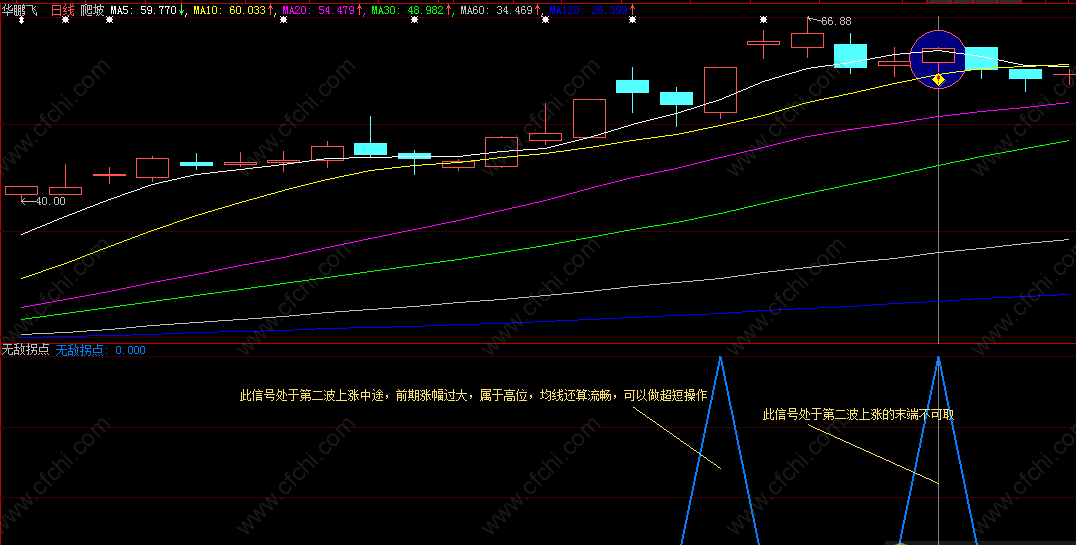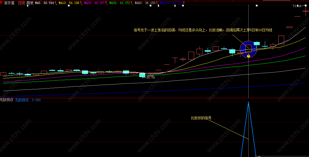 可超短线操作:尾盘看信号在的,信号K线位置有点高的,但是均线还是多头向上,还是比较流畅的,可以做一夜情操作。