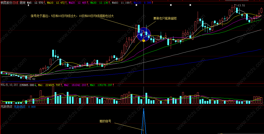 1、出信号K线位置处于高位的,前面是暴涨式拉升过的,5日均线和10日均线间距过大的,10日和20日间距过大的。
