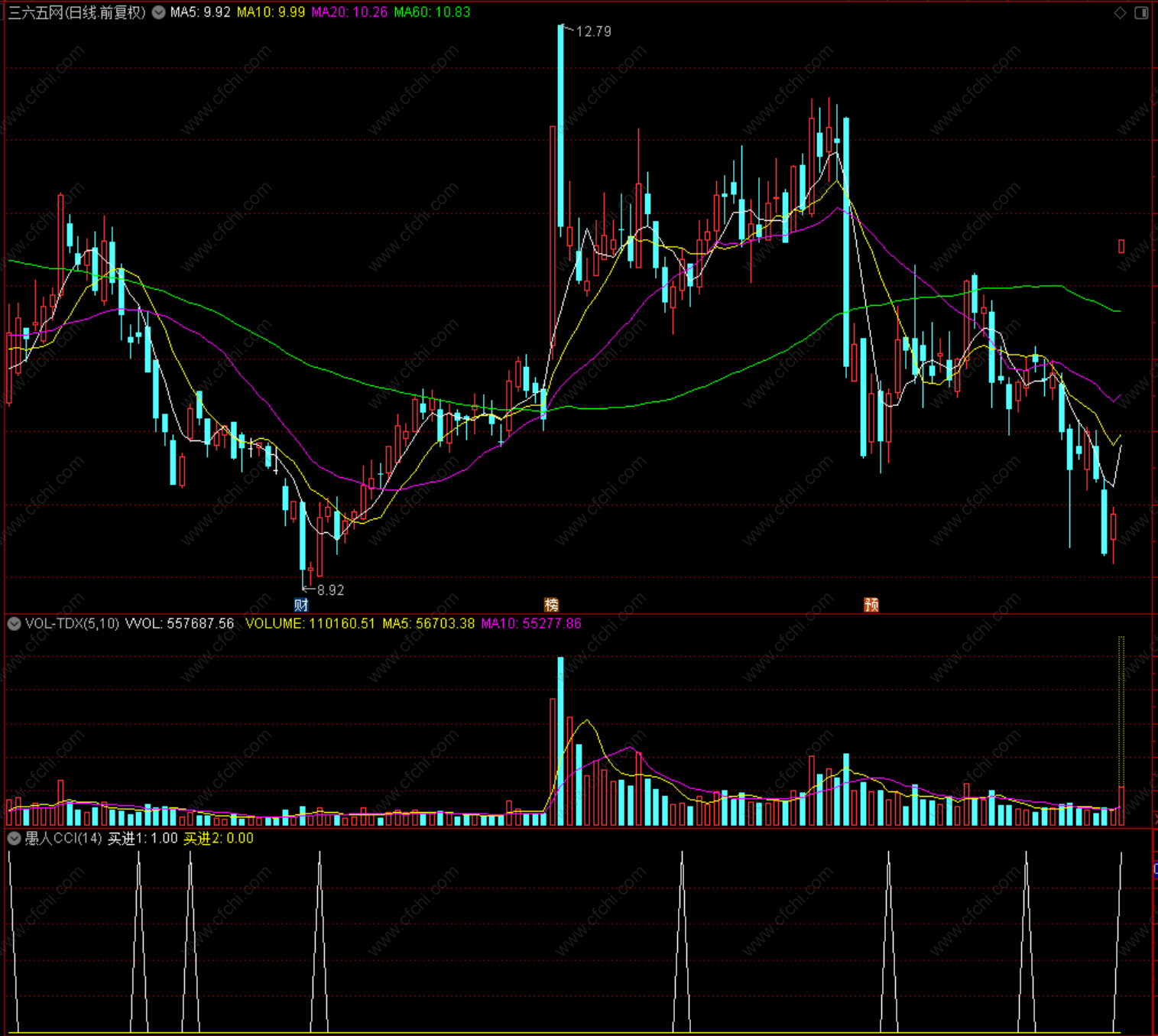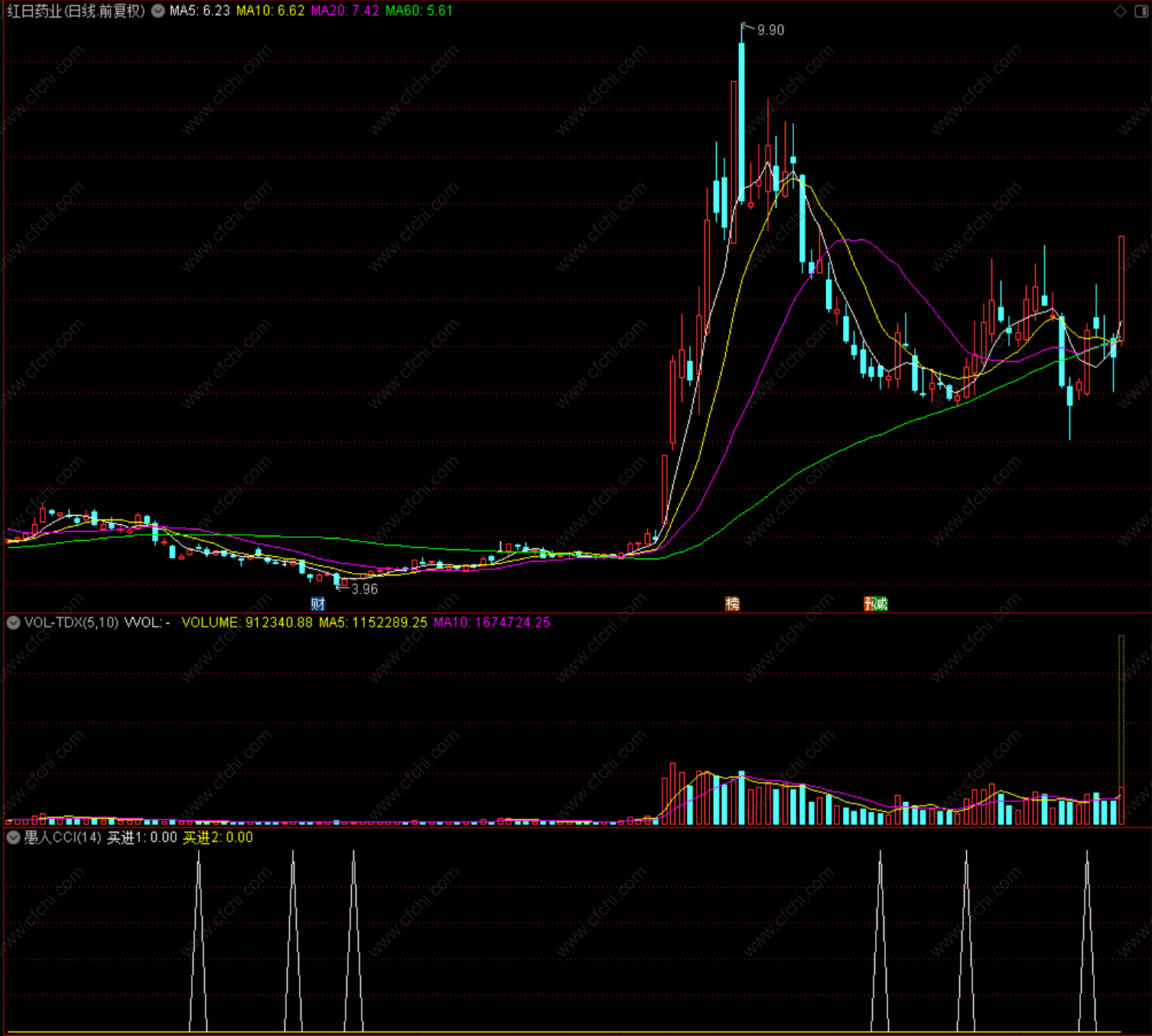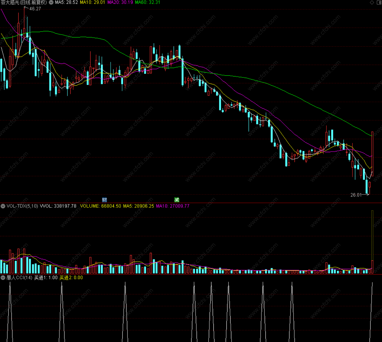 也是符合(2)的情况,现在CCI已经回升,看看能否有奇迹的发生!在底部时我大力推荐。