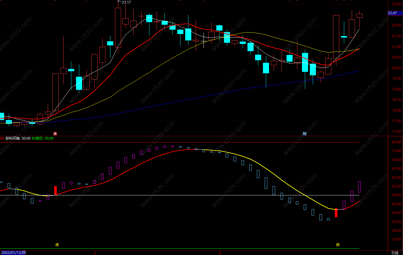 指标被划分成了三个区域,分别是抄底区、获利区、风险区。