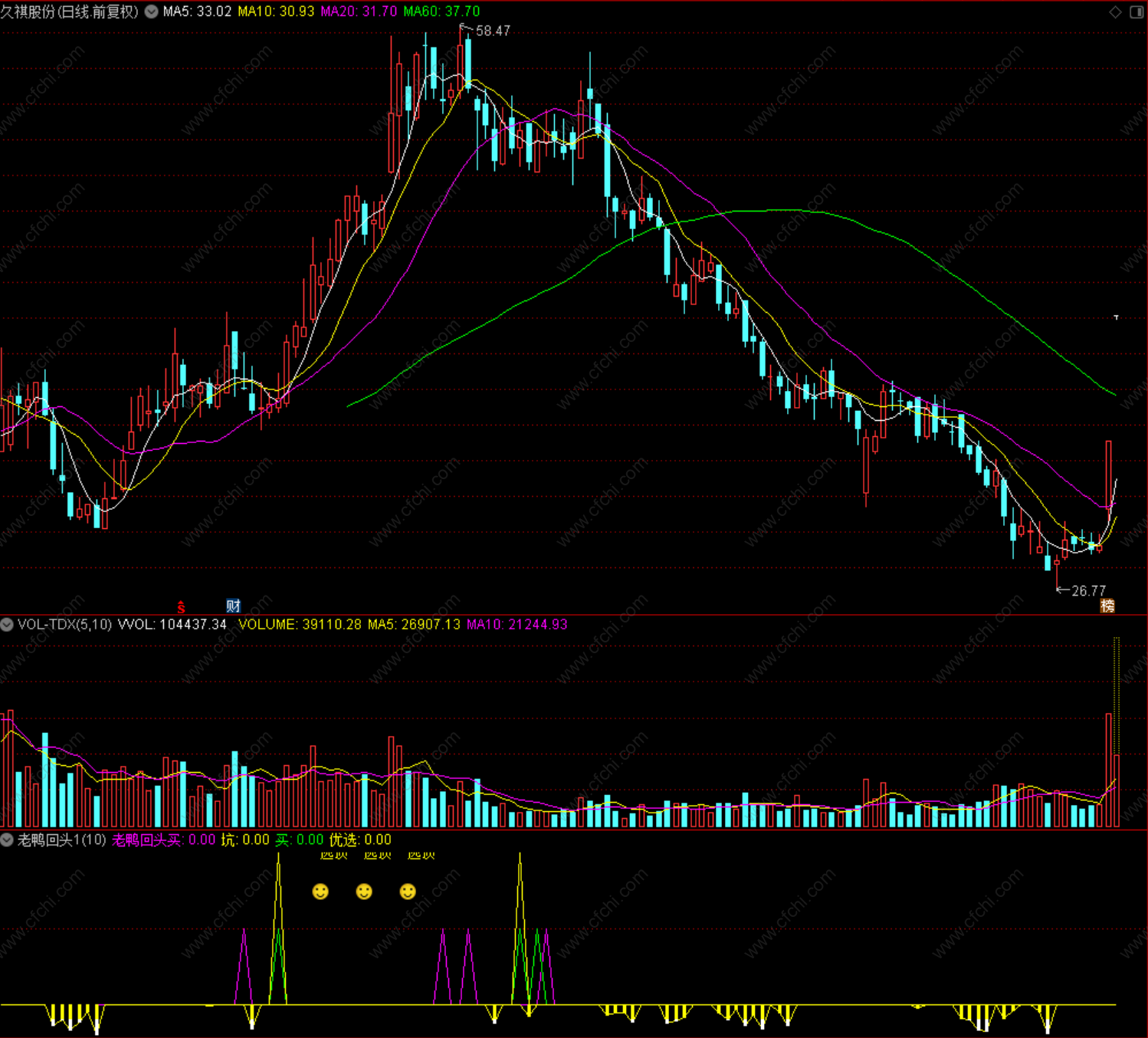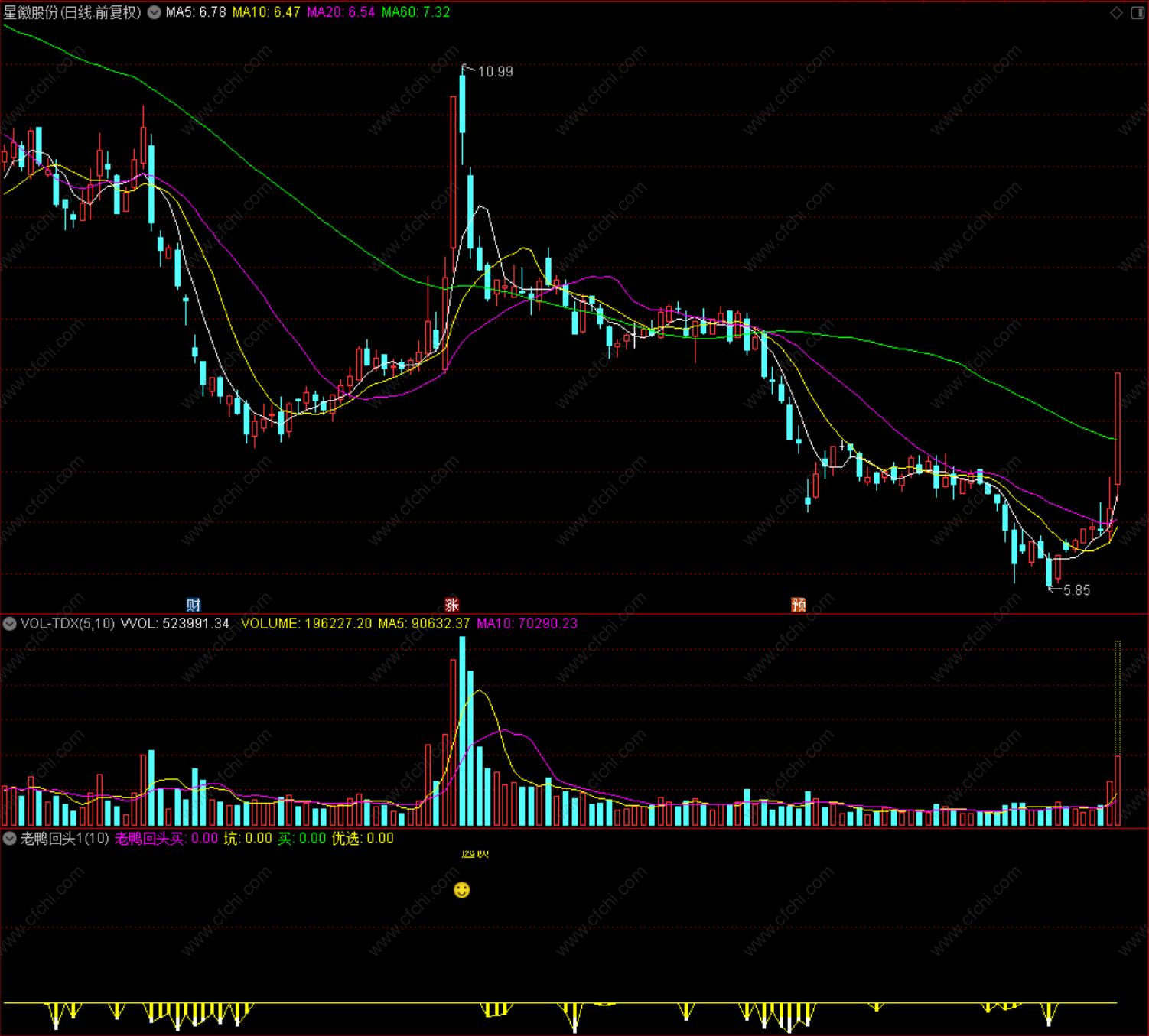 (老鸭回头 通达信 副图 源码 指标公式)