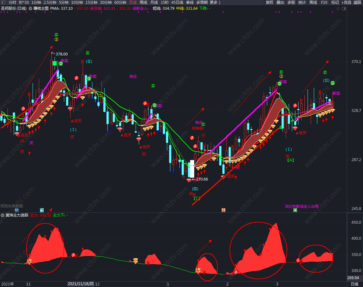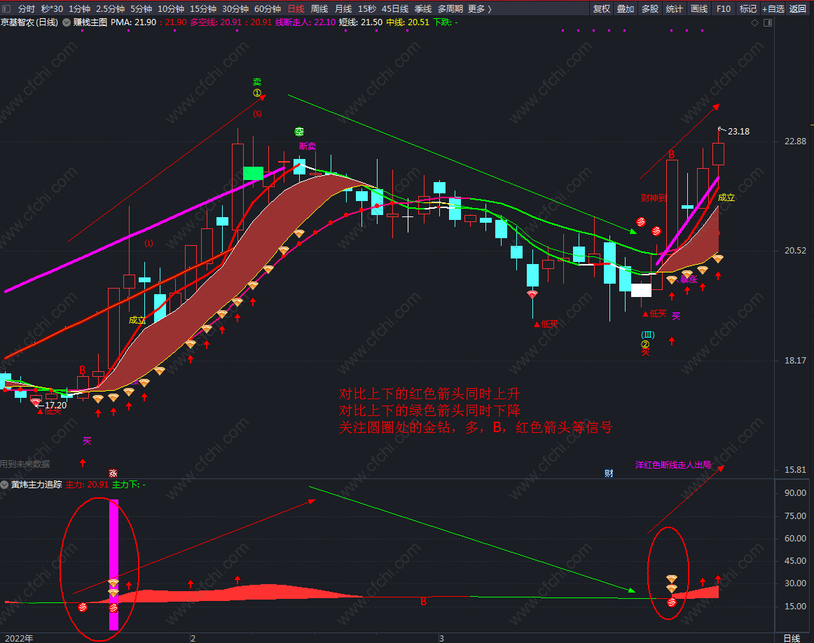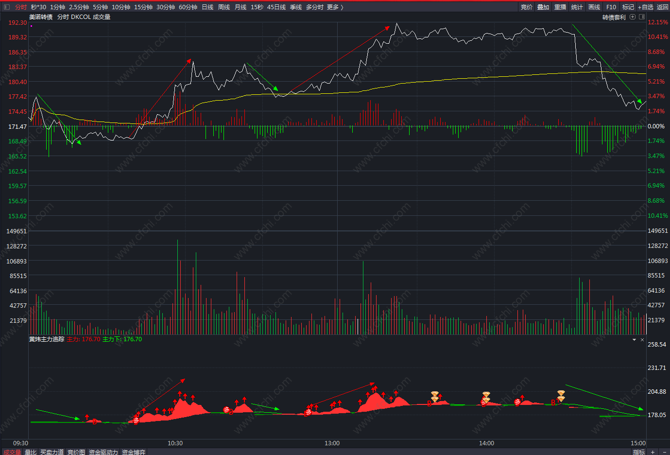 (黄炜主力追踪副图,做T分时副图,T+0神器,也可用于日K线等抄底副图,可用于股票,可转债,期货等)