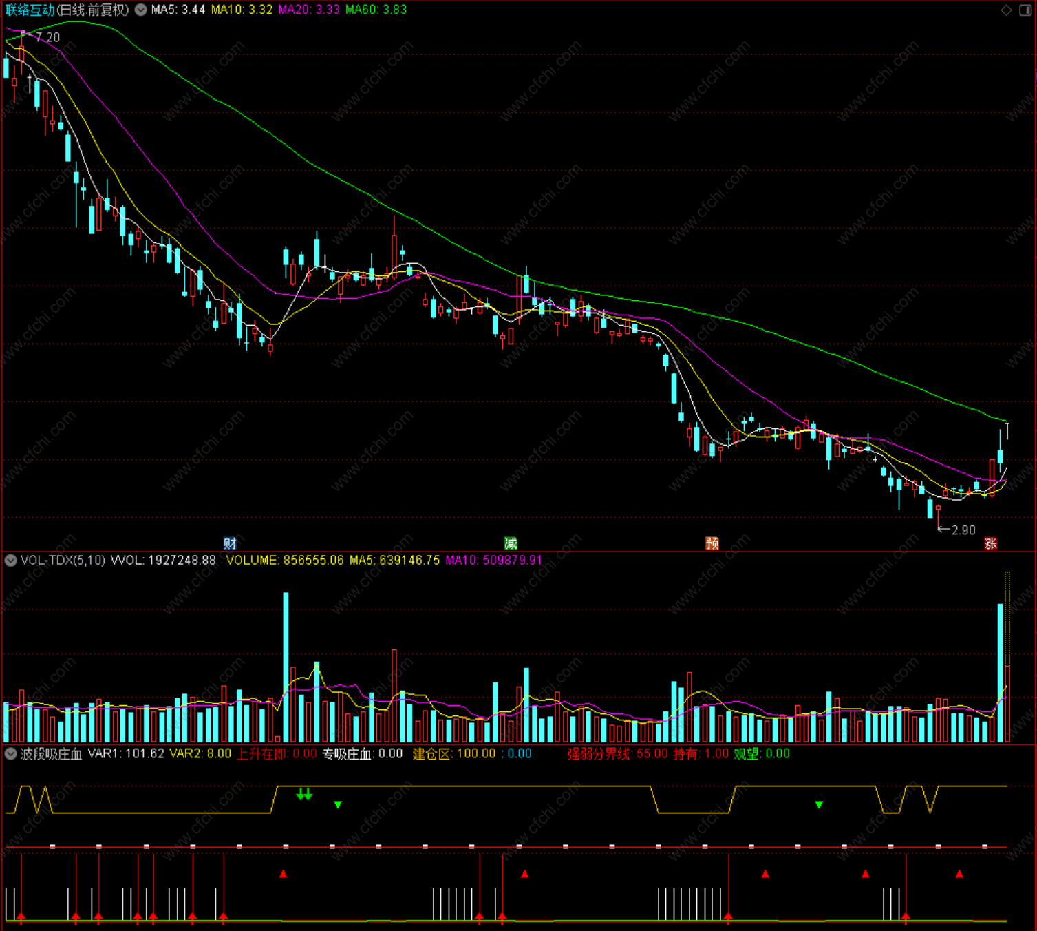 波段吸庄血 通达信 副图 源码 指标公式