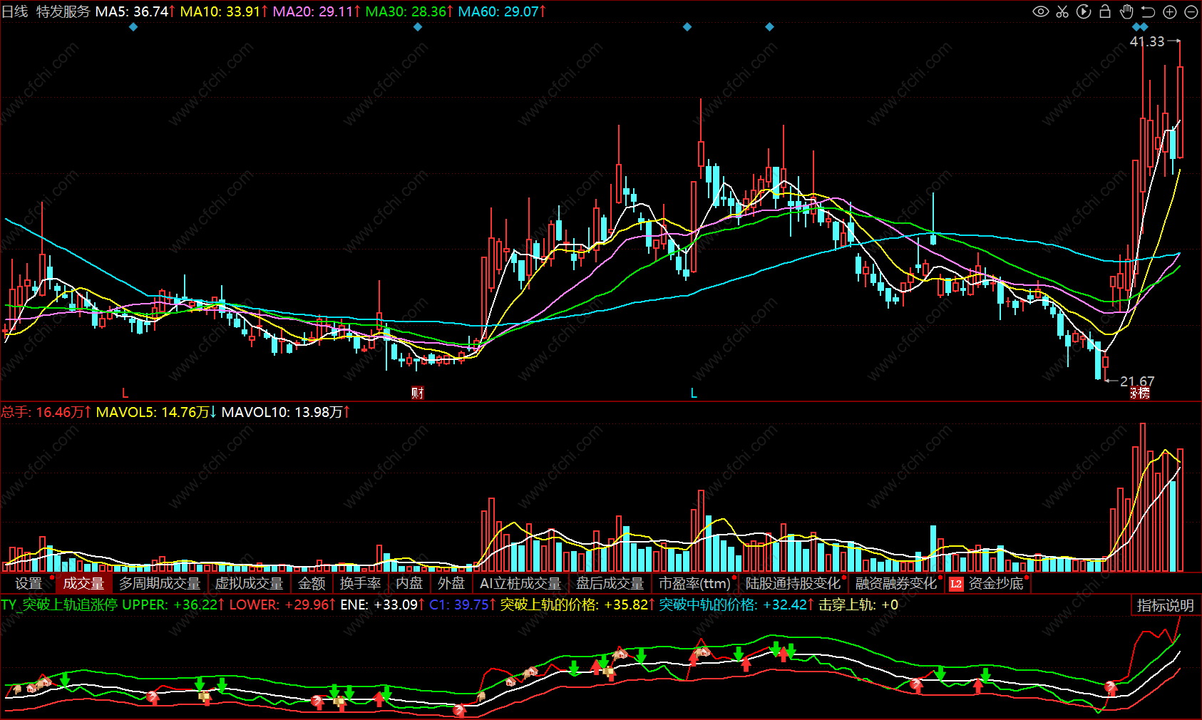 (TY_突破上轨追涨停 同花顺 副图 源码 指标公式)
