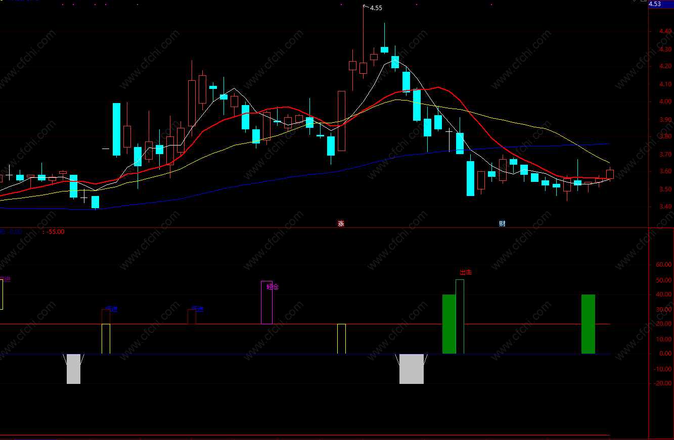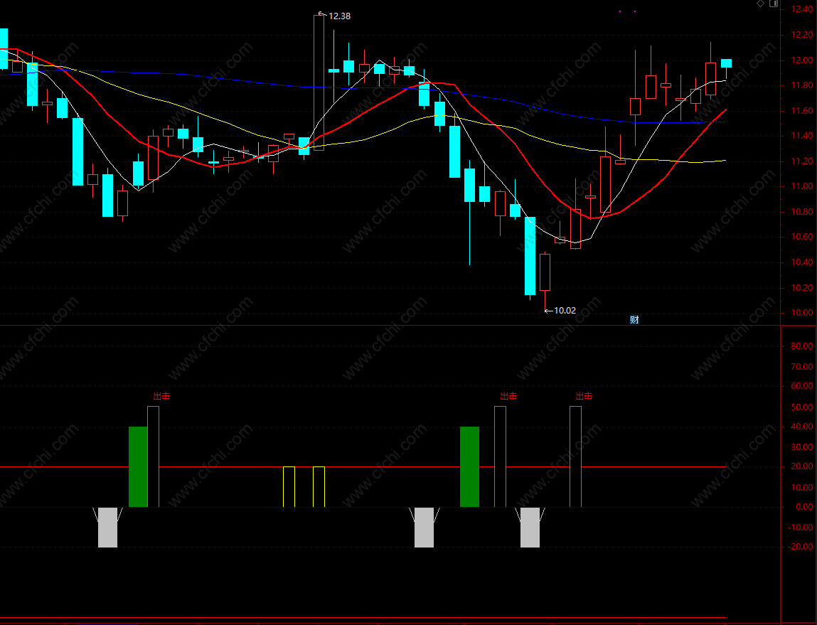 指标用法简单 按文字提示 “出击“”买进“提示买入,简单精准抄底逃顶信号指标!
