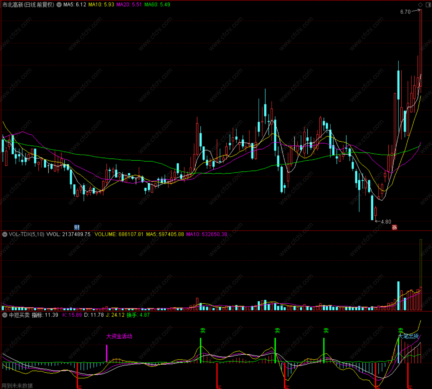 (中短买卖 通达信 副图 源码 指标公式)