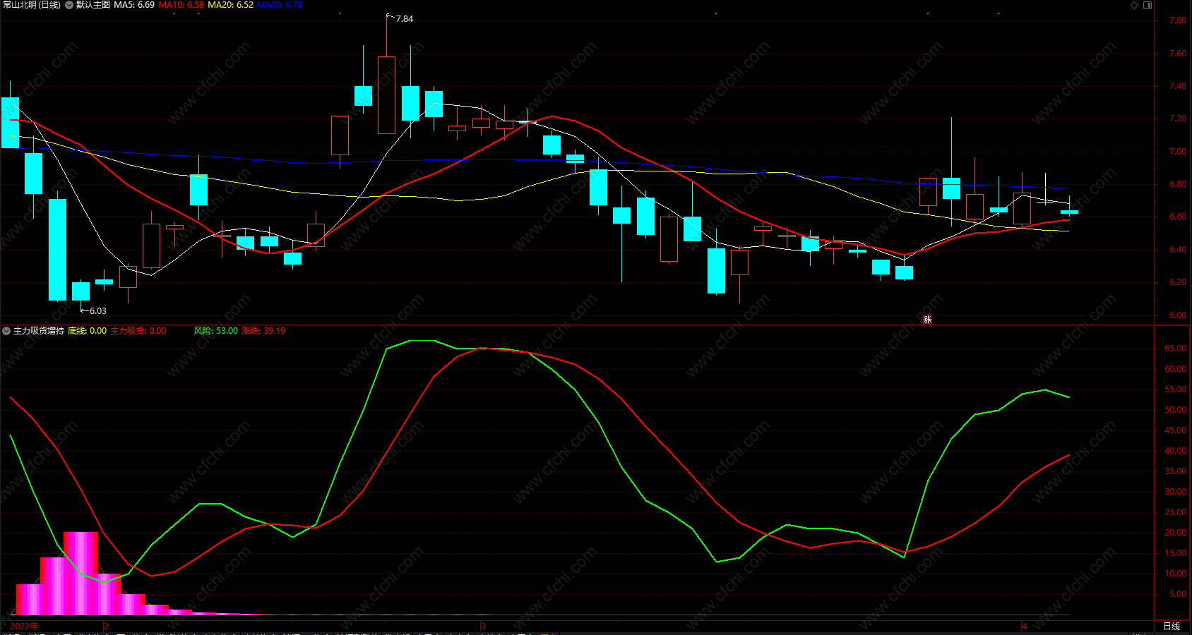 吸筹6:STICKLINE(VAR7,0,VAR7,1,0),COLORFF66FF;