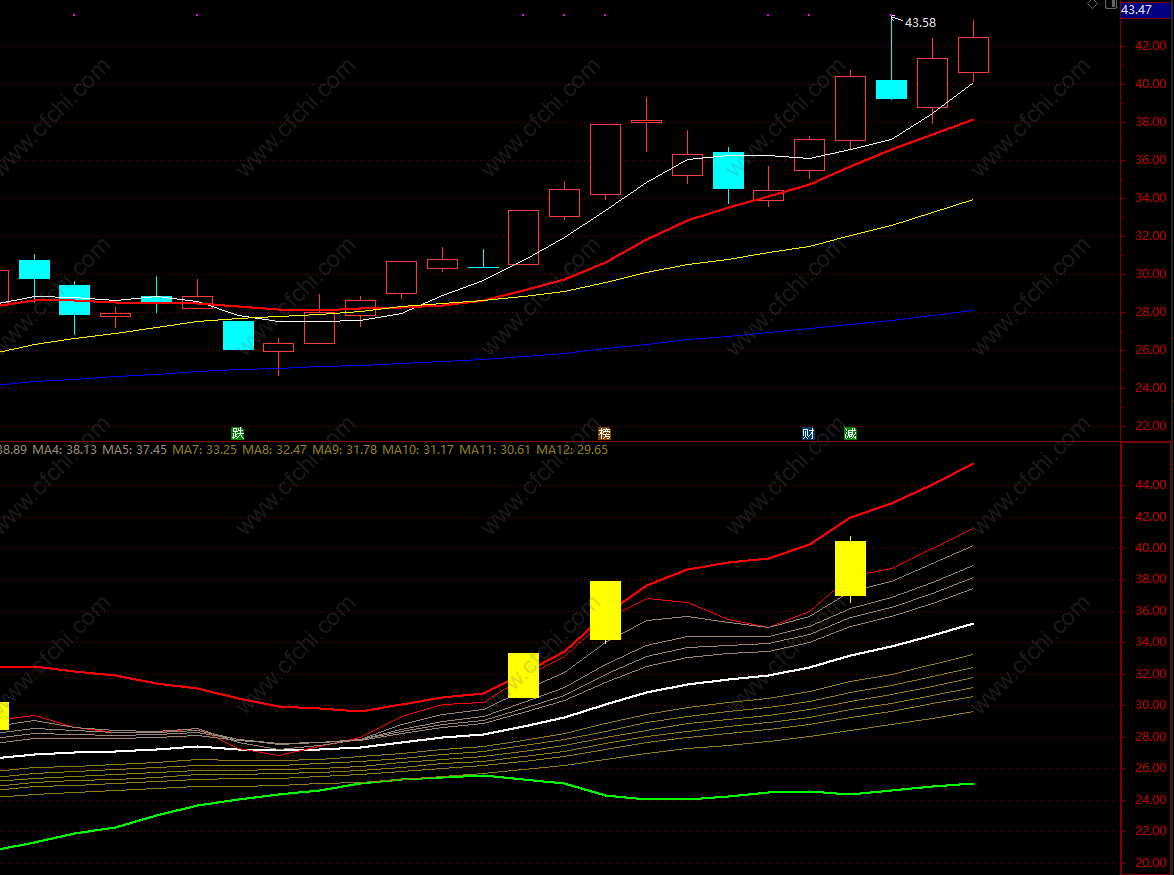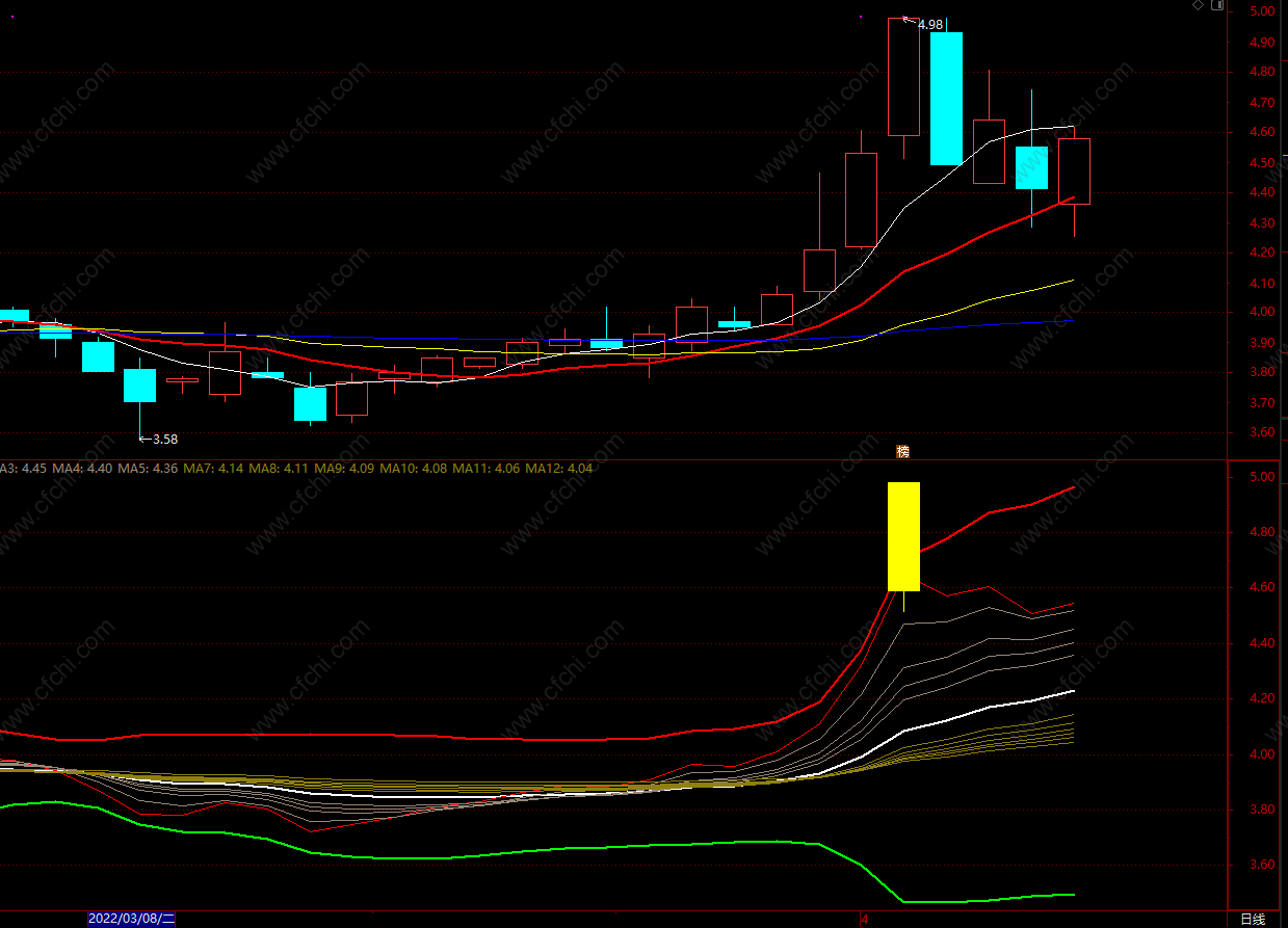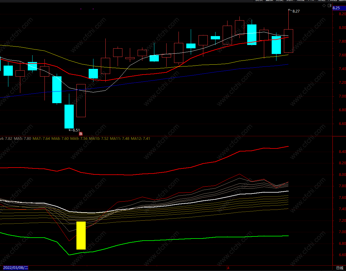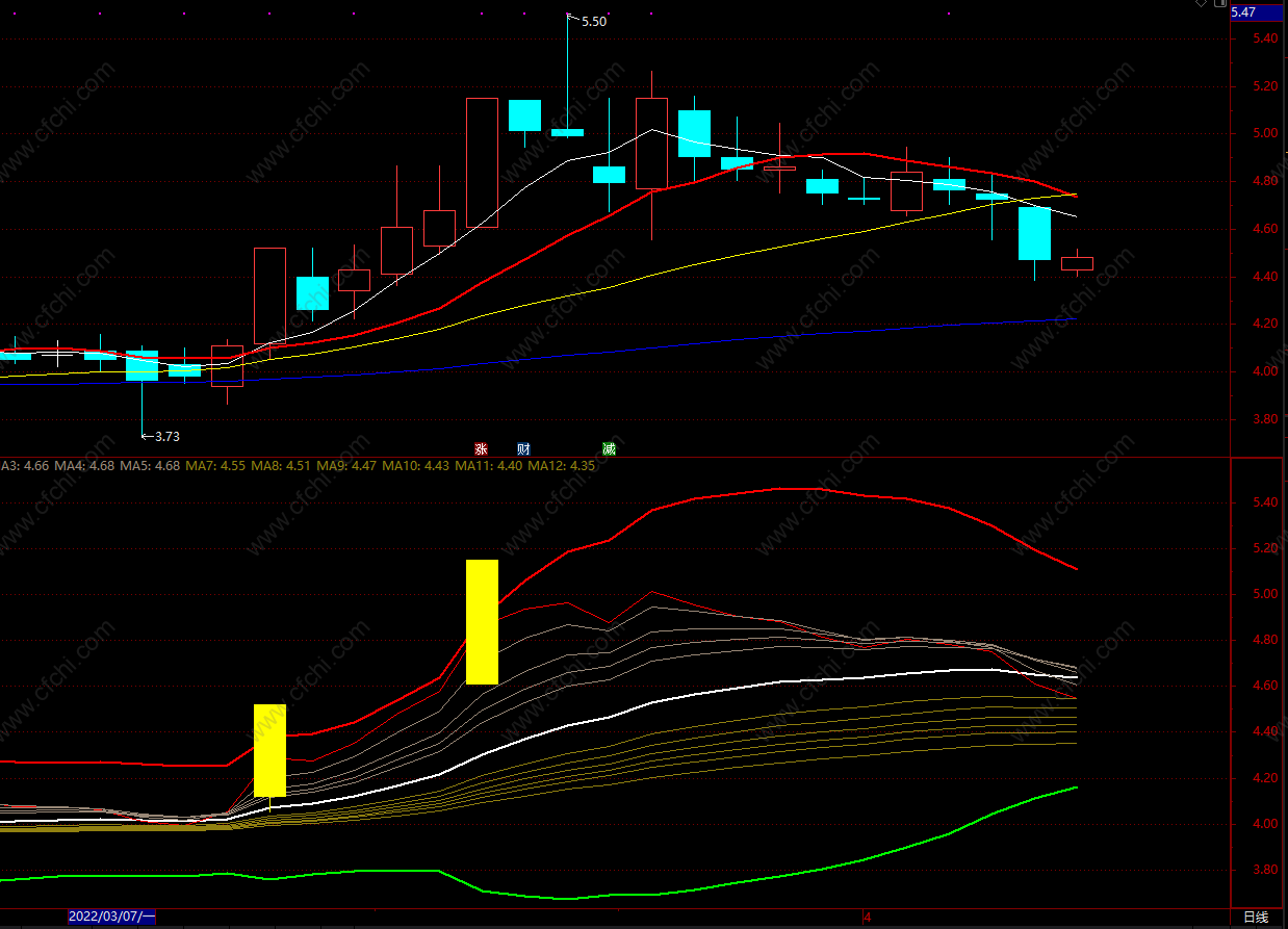 (通达信顾比布林线 顾比移动平均线 副图 源码)