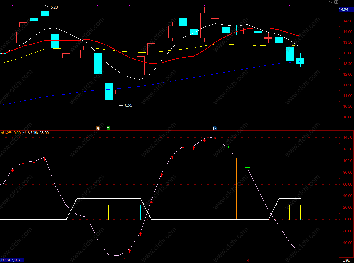 趋势:LLV(MA(H,13),1),COLORGREEN,LINETHICK2;