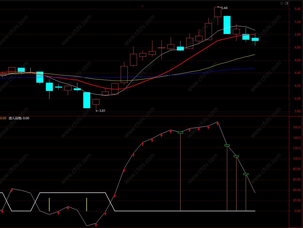 针对价格变化,显示以下特征线:注意出击、进攻良机、穷追猛打、危险报告、进入谷地等。