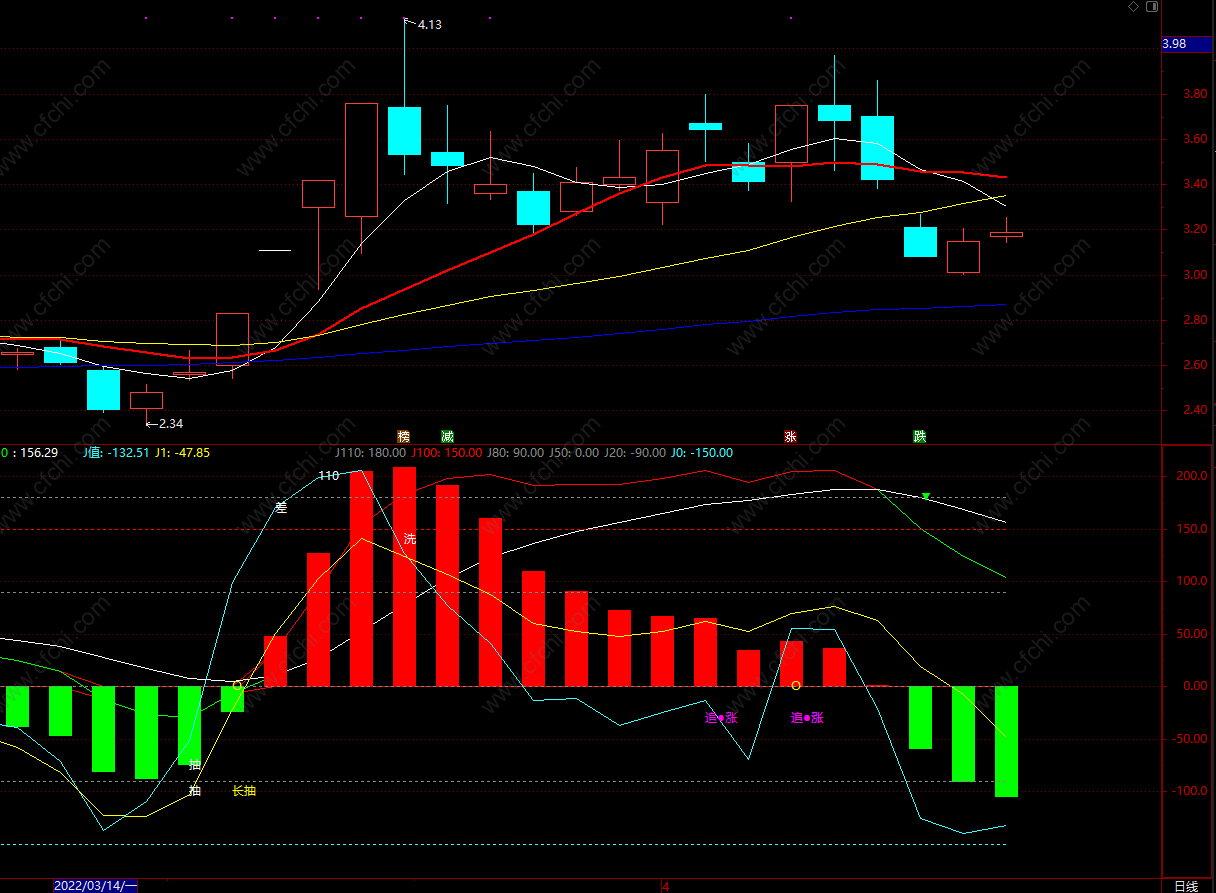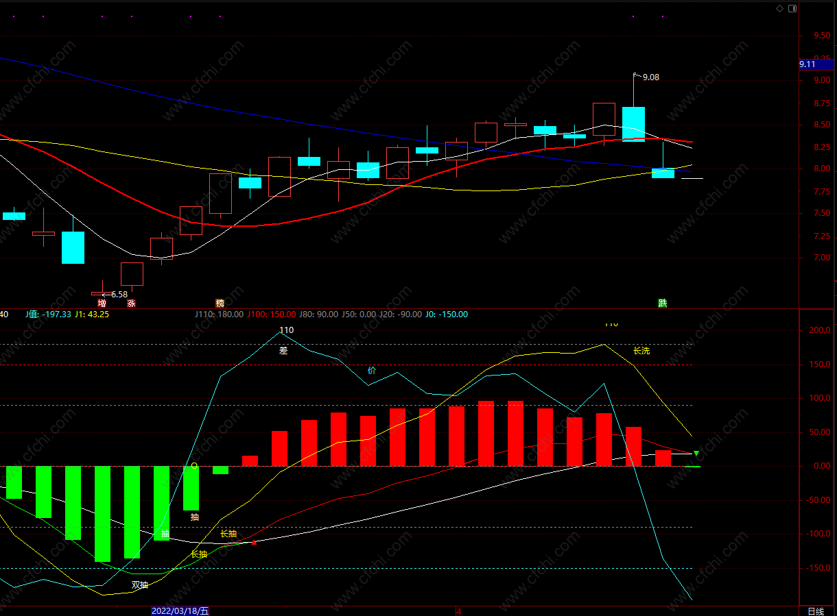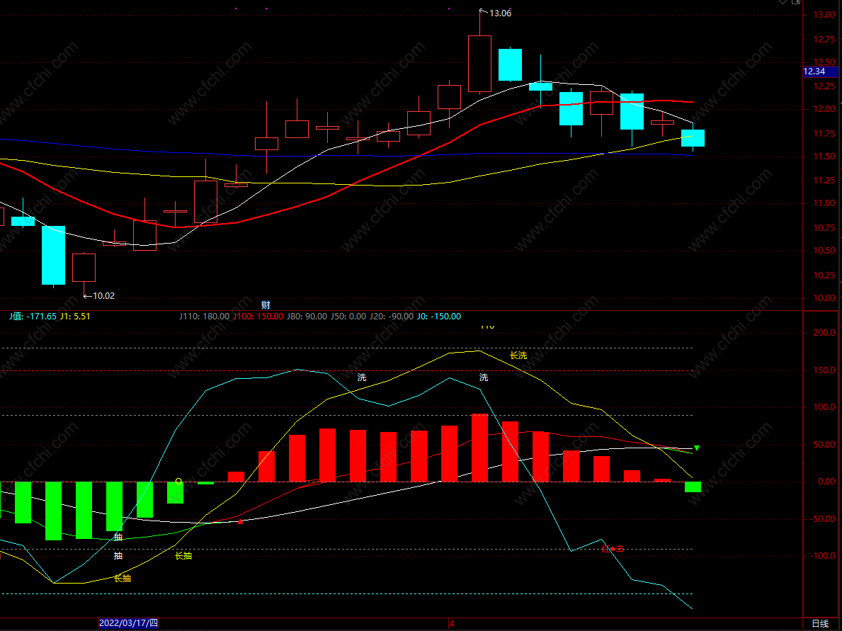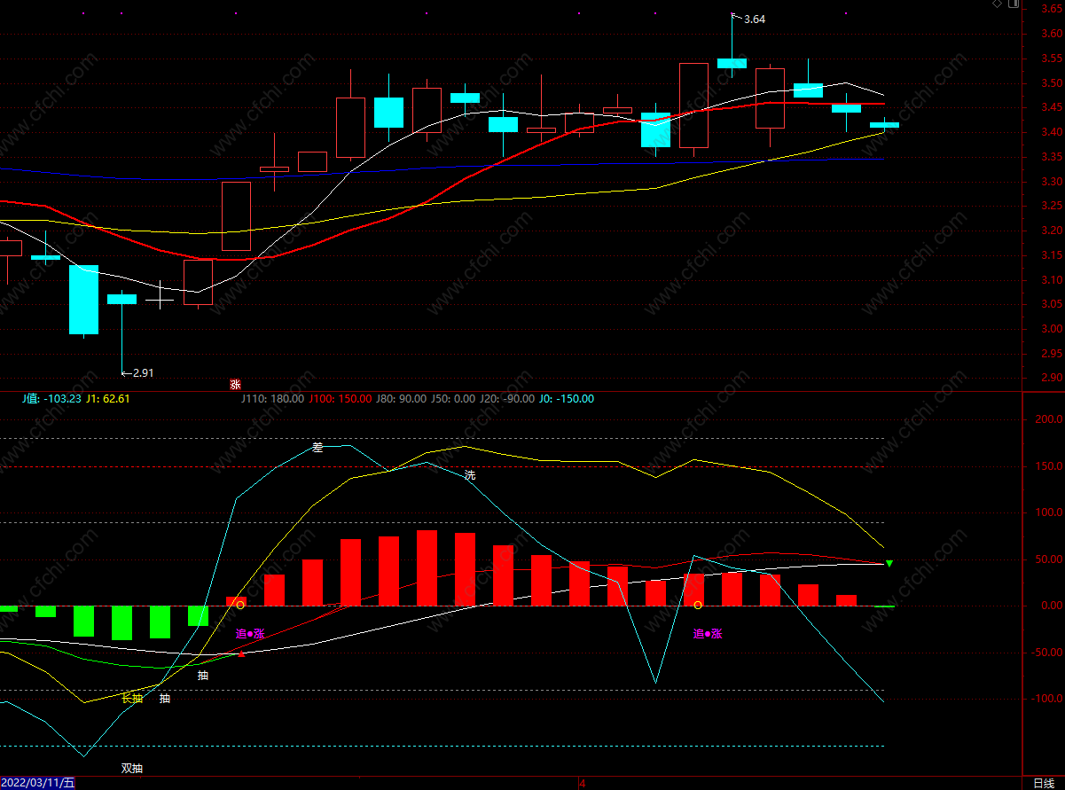 a.MACD的DIF大于DEA,b.KDJ的J值上穿0,5,20等自设,c.cpx3日线B点