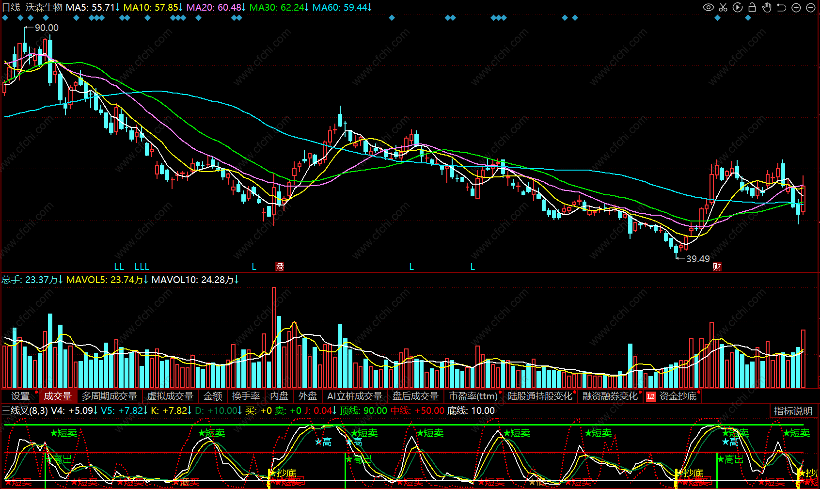 4.SKDJ波动于50左右的任何讯号,其作用不大。