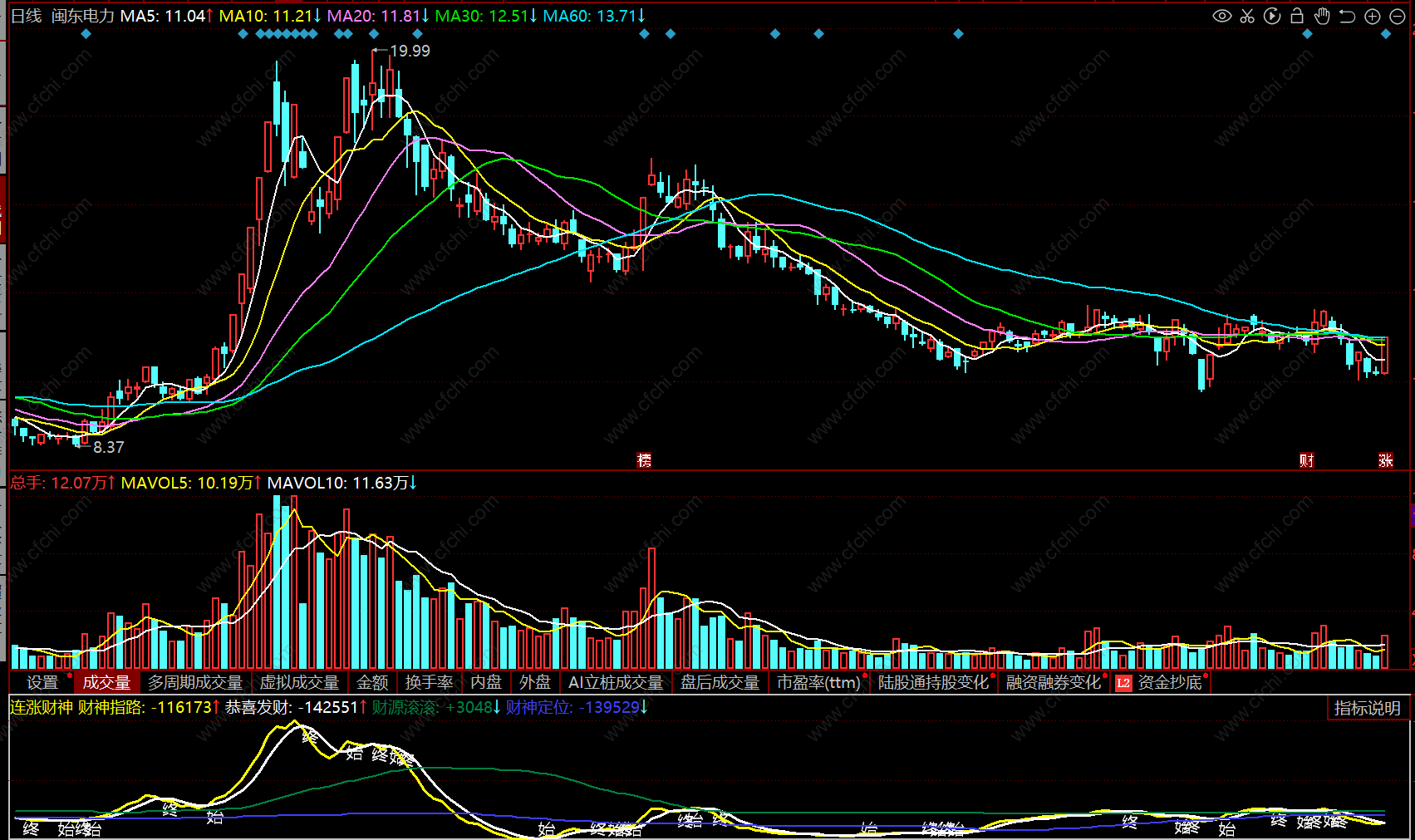 连涨财神D 同花顺 副图 源码 指标公式