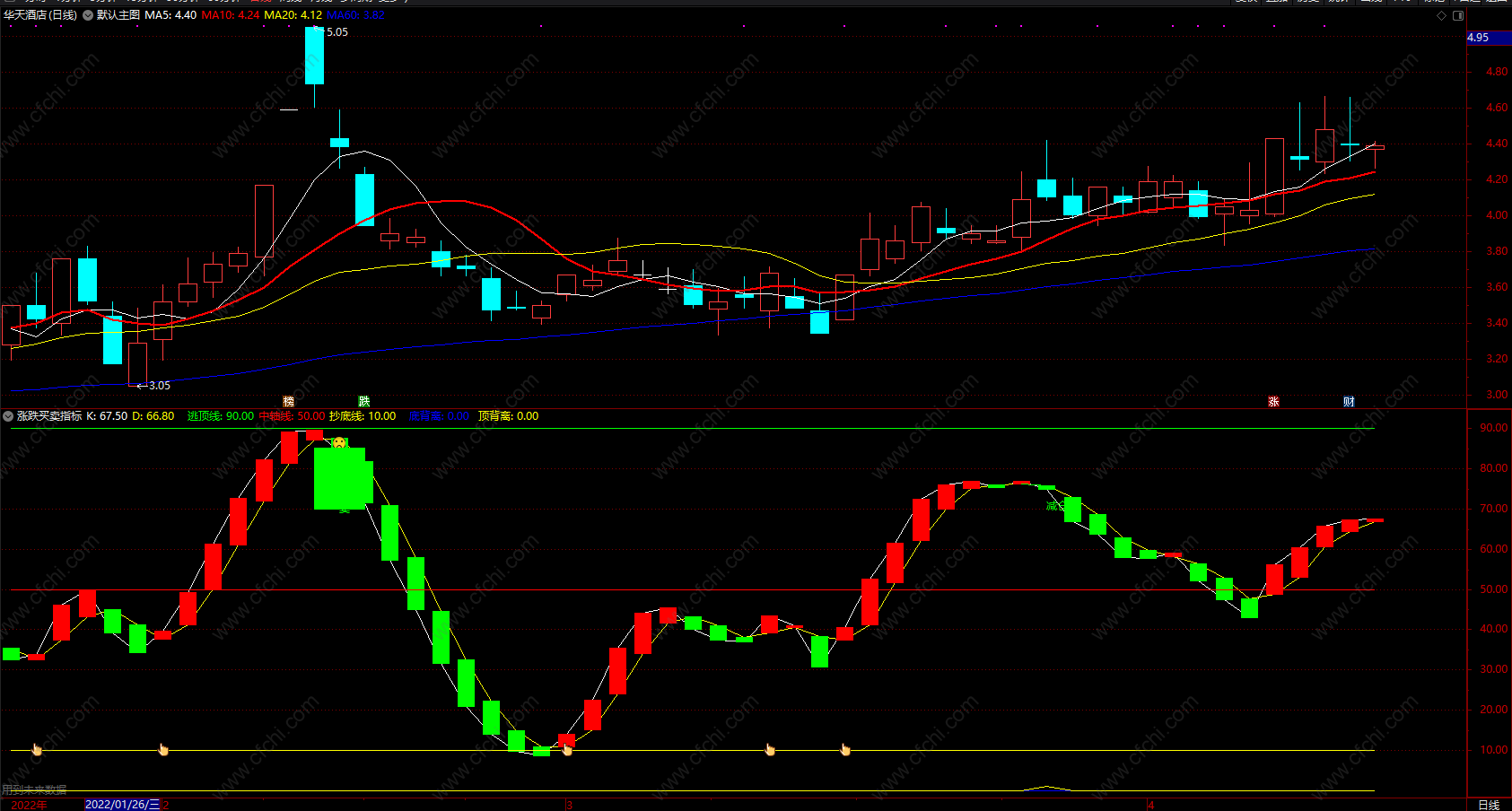 财富池指标公式网(www.cfchi.com)提醒您:指标公式是通过数学逻辑角度编写而来,仅是股票分析环节中的一个辅助工具,对股票选股效率和分析便捷上起到一定的作用,股市是具有不确定性和不可预测性的,请正常对待和使用指标公式!