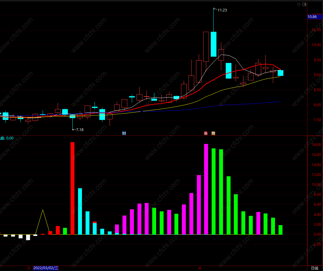 STICKLINE(控盘<0,控盘,0,2,0),COLORWHITE;