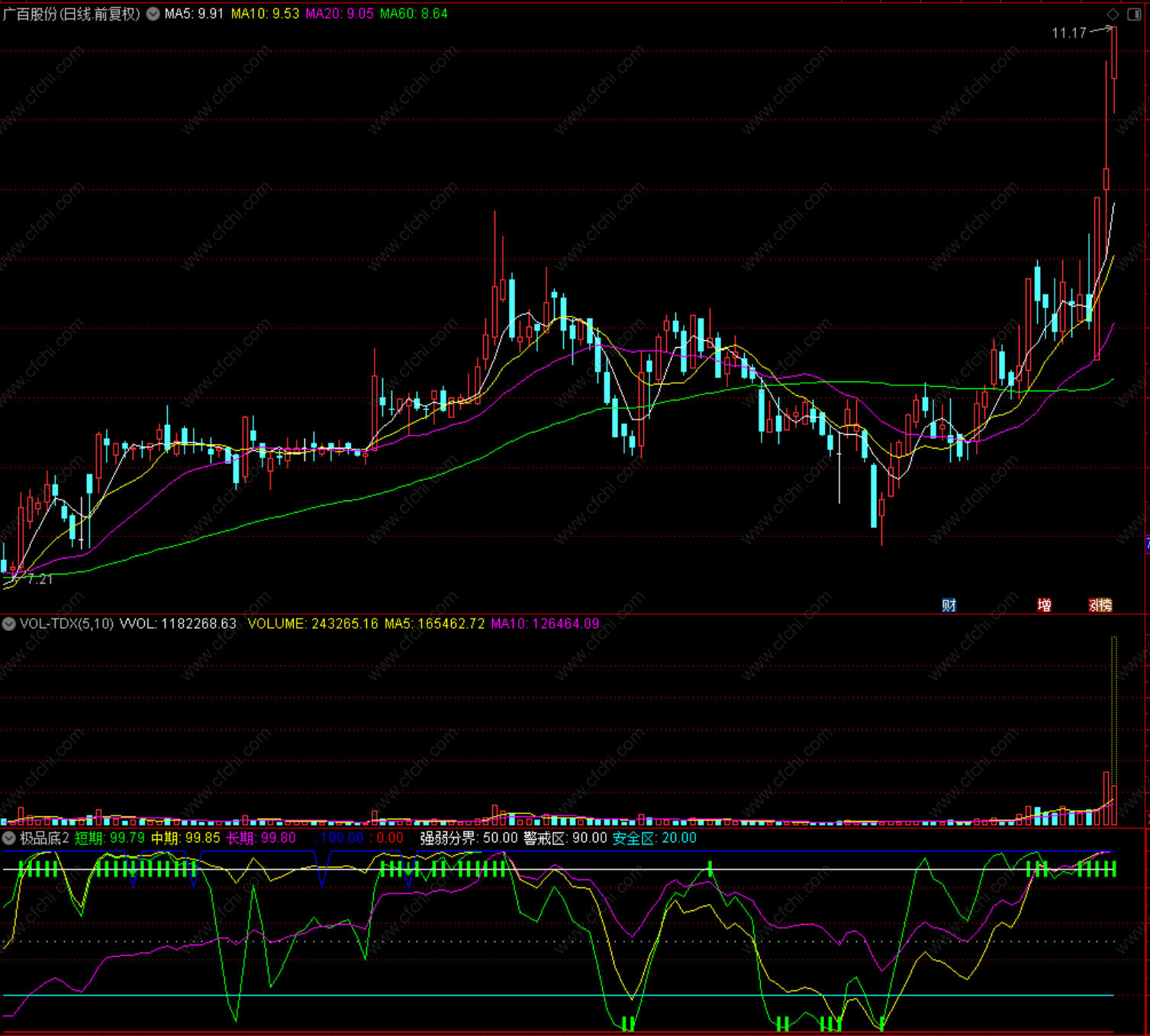 STICKLINE(短期<5 AND 中期<30,0,8,1,0);