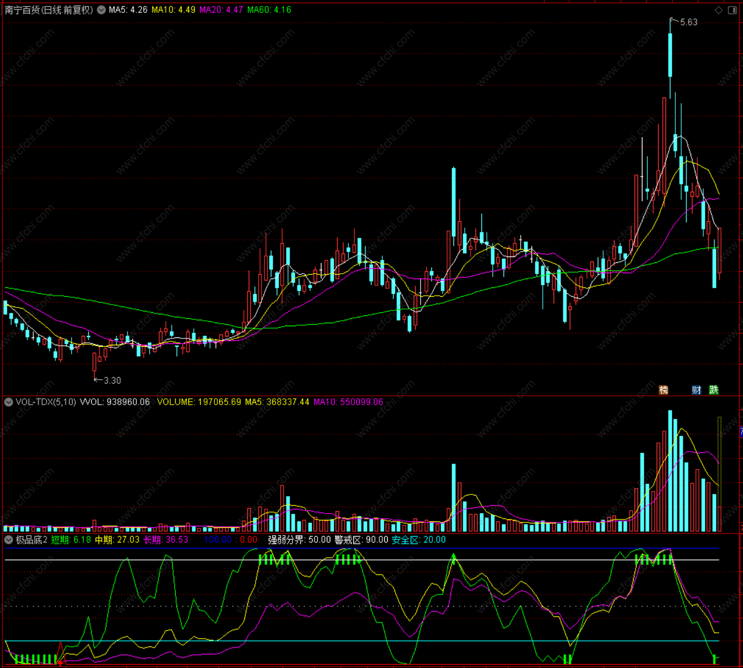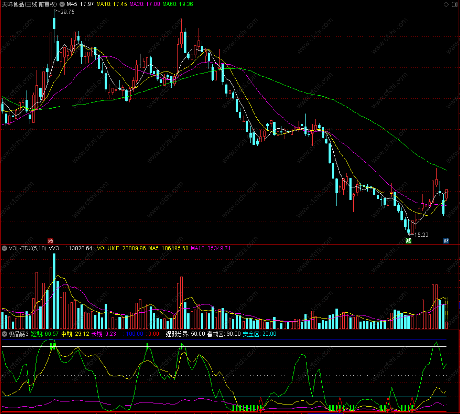 该指标适合有明显波段走势的个股,当底部出现白色小柱状线或者买入箭头预示阶段底部,后势上涨概率较大。
