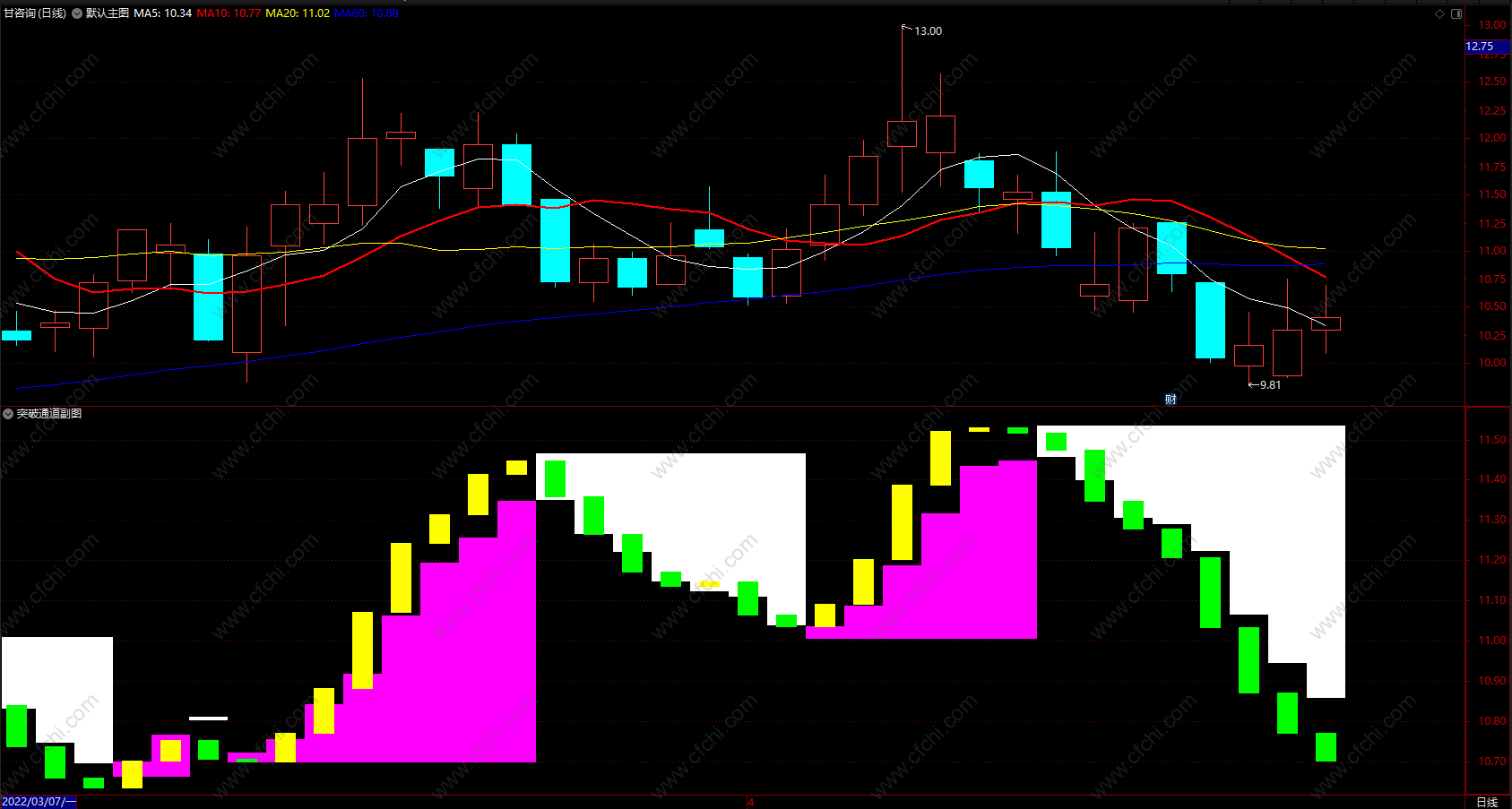 通达信突破通道副图 突破前的买卖指标公式 源码